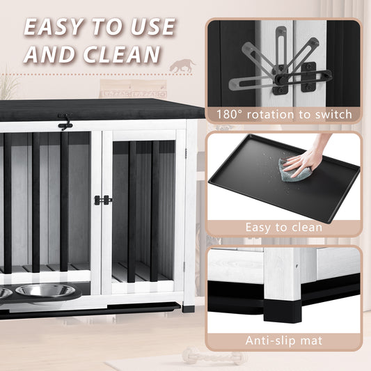 Furmax Solid Wood Indoor Dog Crate Furniture with Bowl Portable Collapsible Doghouse End Table Heavy Duty Dog Cage with Opening Roof