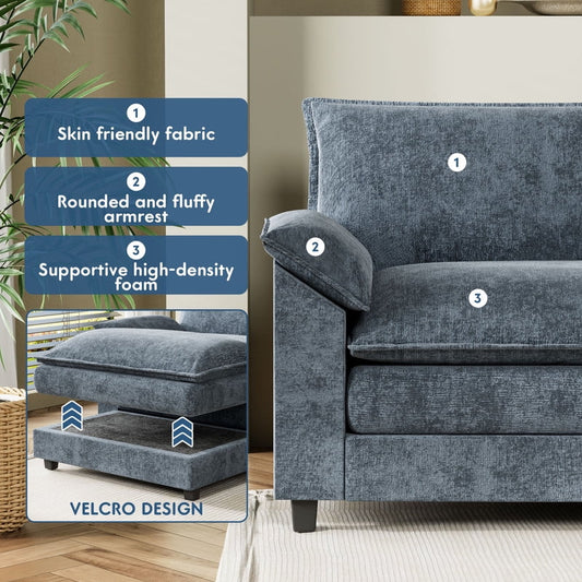 Furmax Sectional Sofa with 2 Movable Ottomans for Living Room, Fabric Convertible Modular Couch