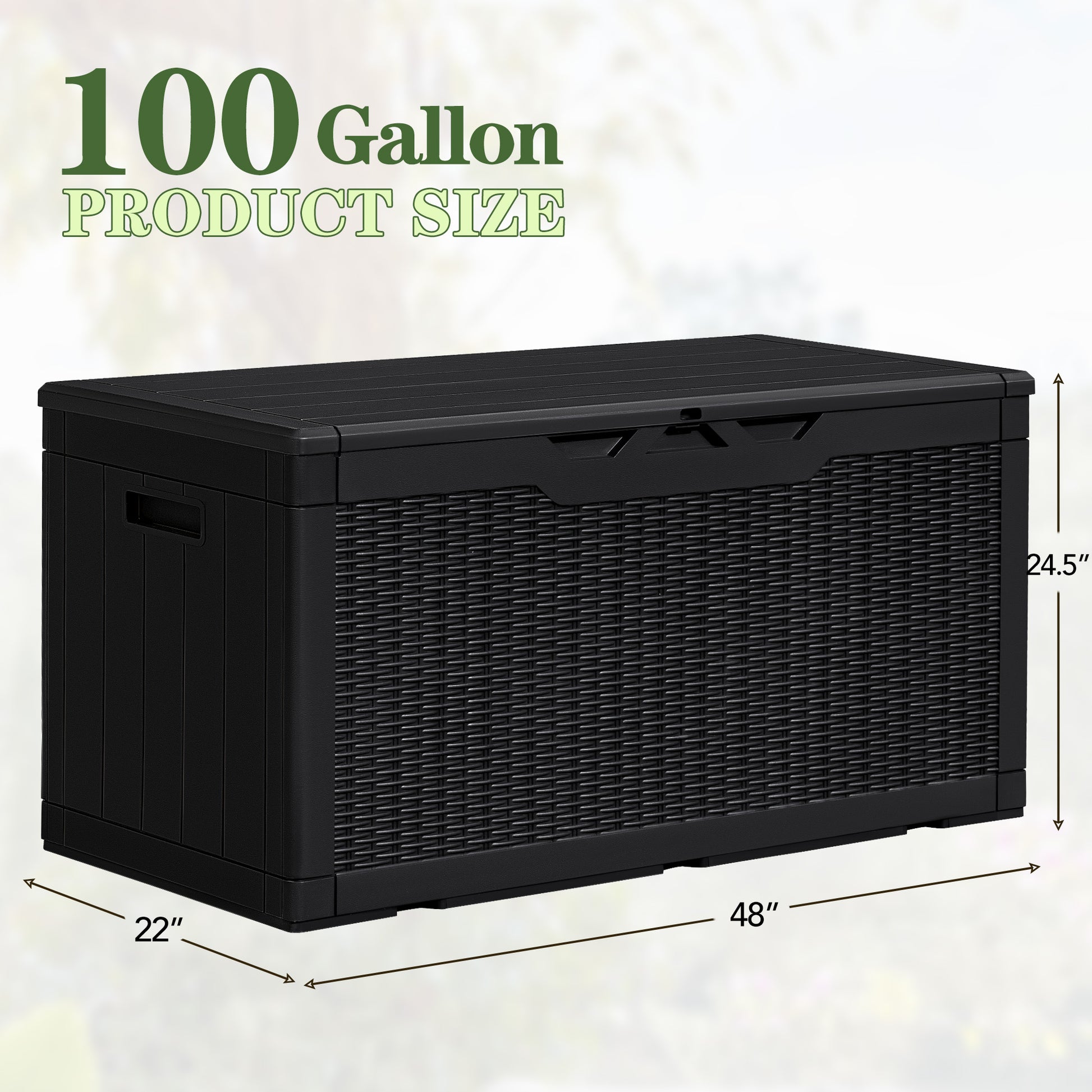 Furmax 100 Gallon Patio Lockable Storage Box, Indoor Outdoor Large Size Resin Deck Container,