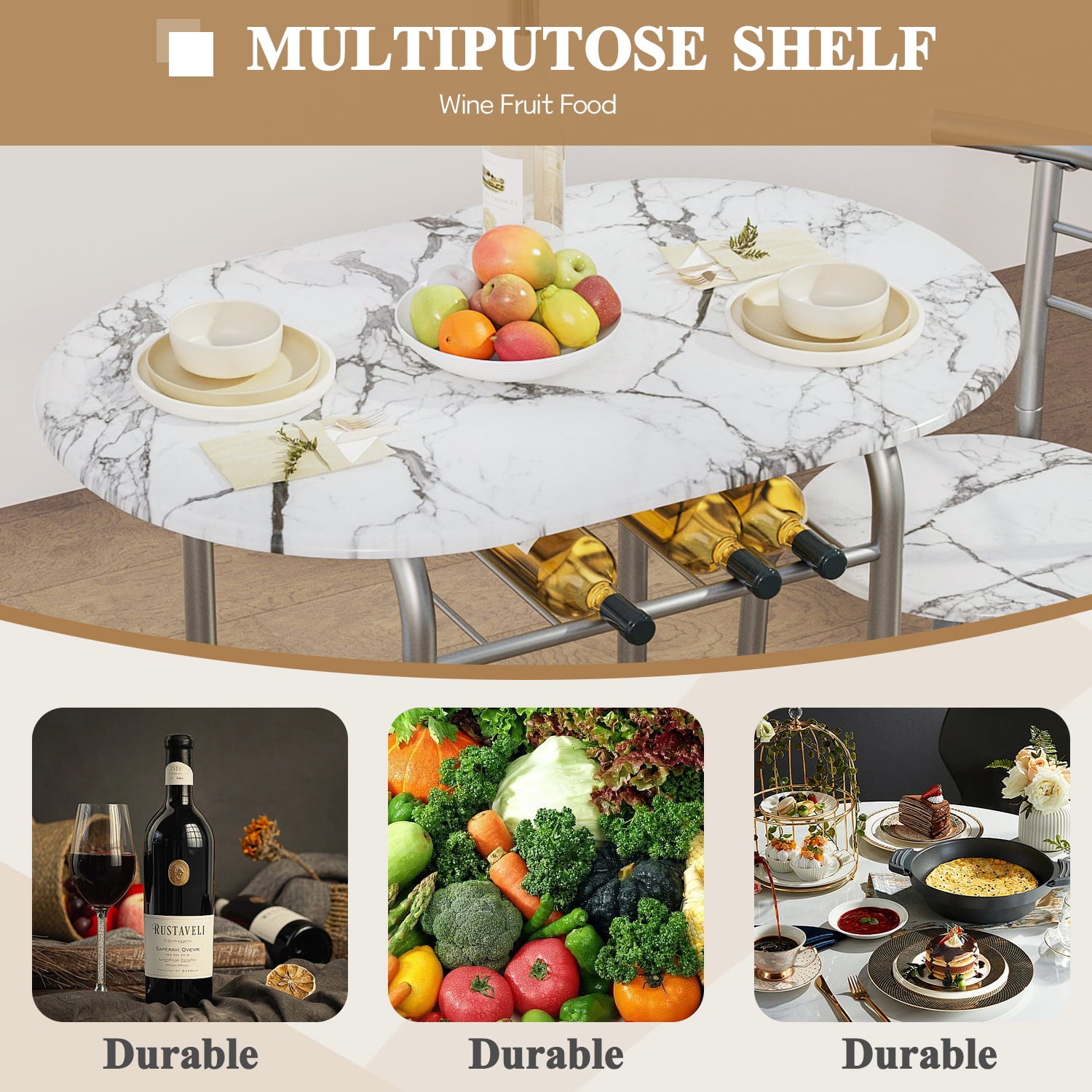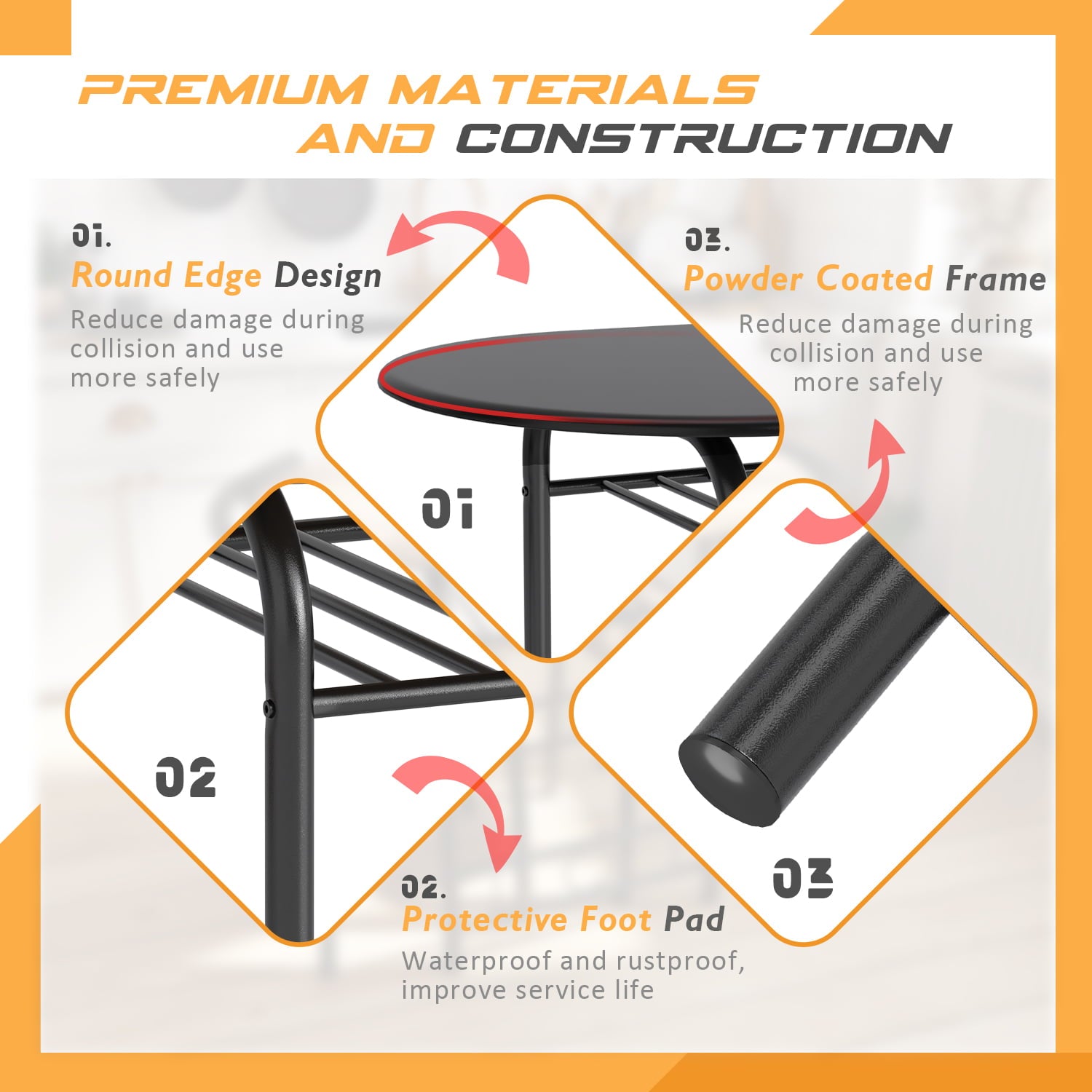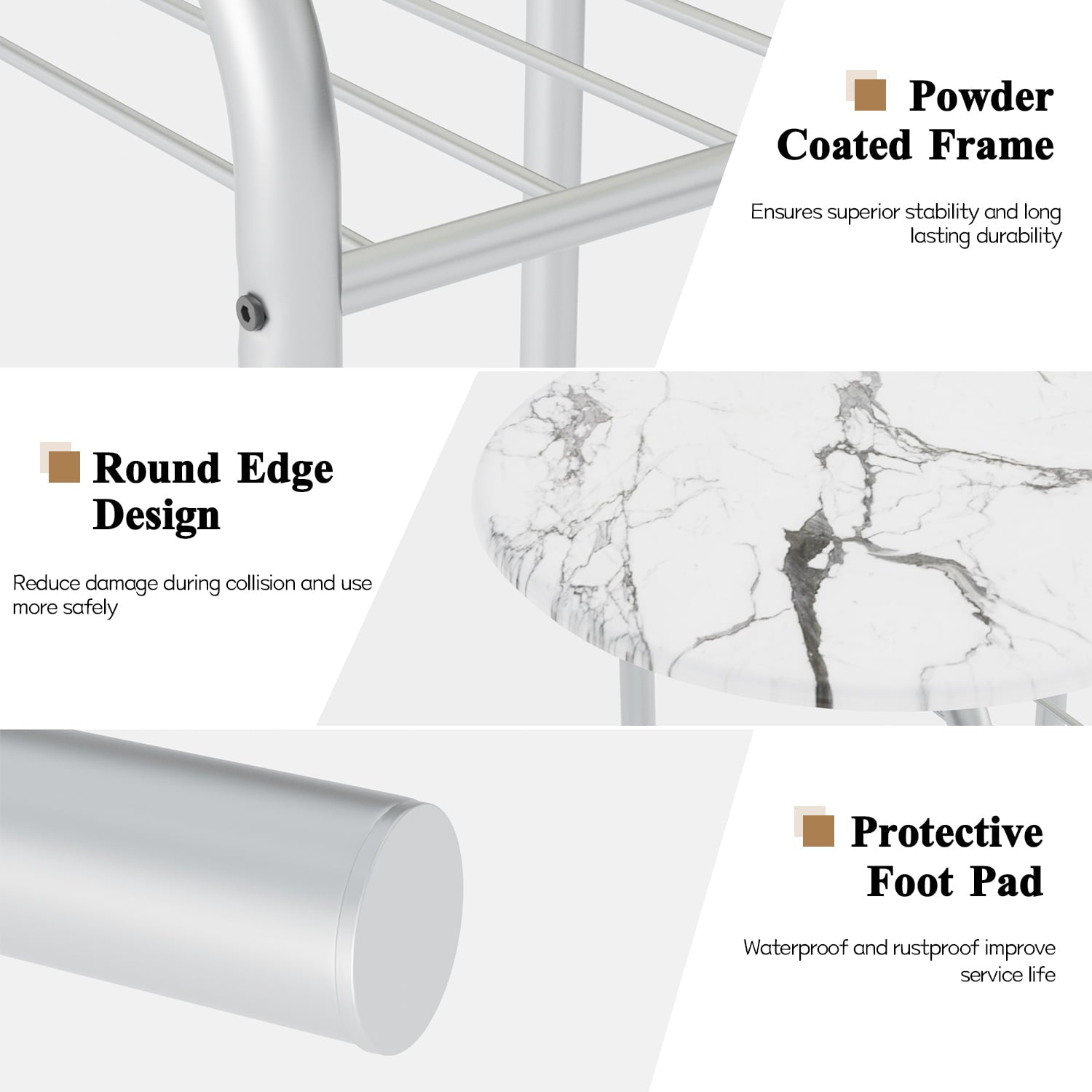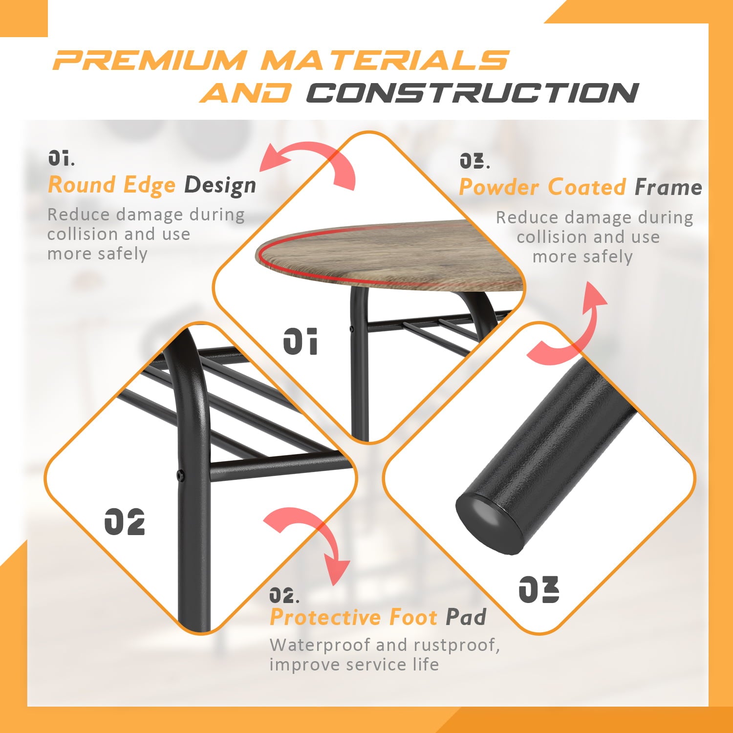 - PREMIUM MATERIAL: This 3-piece dining table set is made of MDF and metal frames, the surface of the iron pipe is painted, which not only increases the rust resistance but also increases the stability. This table and chair set has a strong load-bearing capacity and can meet your daily needs.