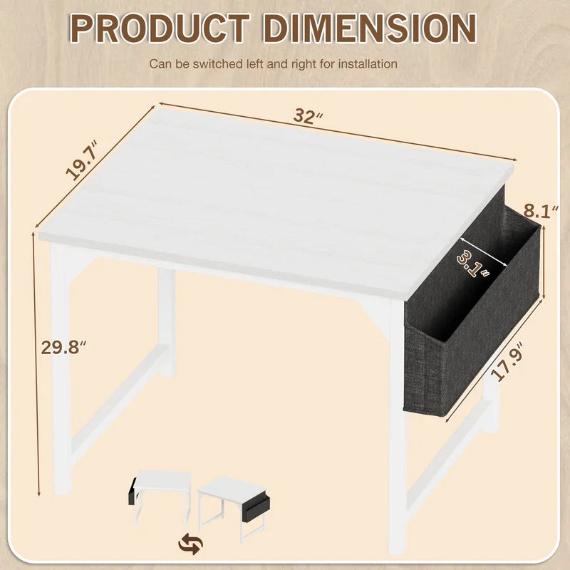 Enhanced Storage Solutions: Experience the convenience of versatile storage with this home office desk. It offers a side storage bag perfect for keeping books and office supplies within reach, while the built-in hooks provide a handy spot for hanging headphones and other essentials. These thoughtful features ensure a tidy and organized workspace, promoting productivity and efficiency.