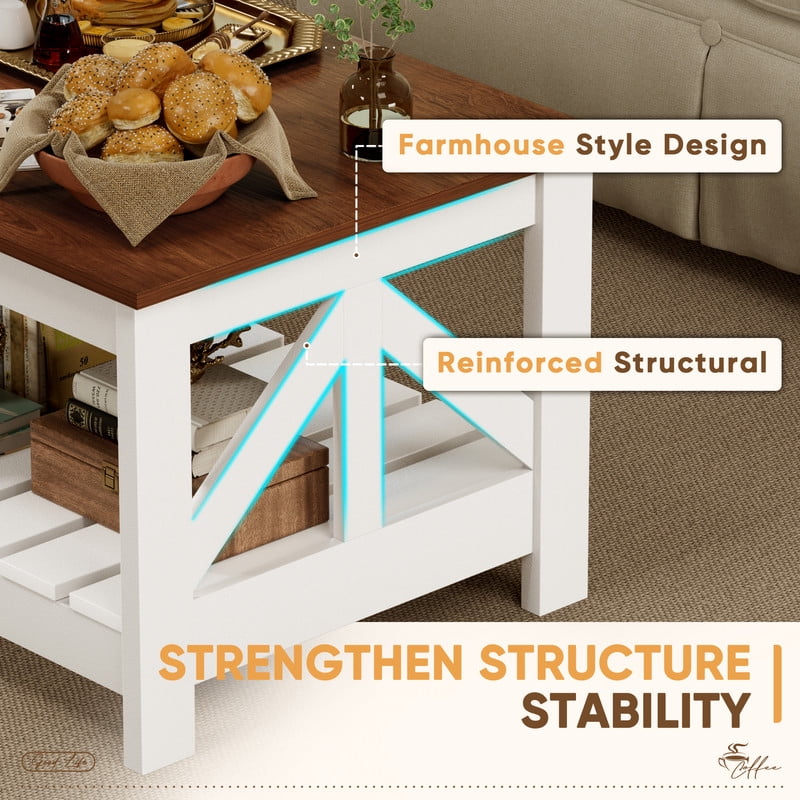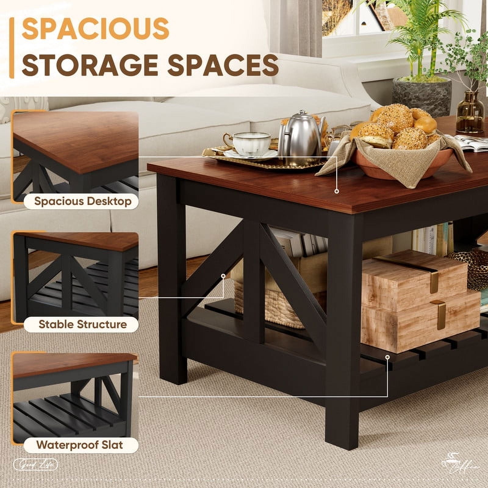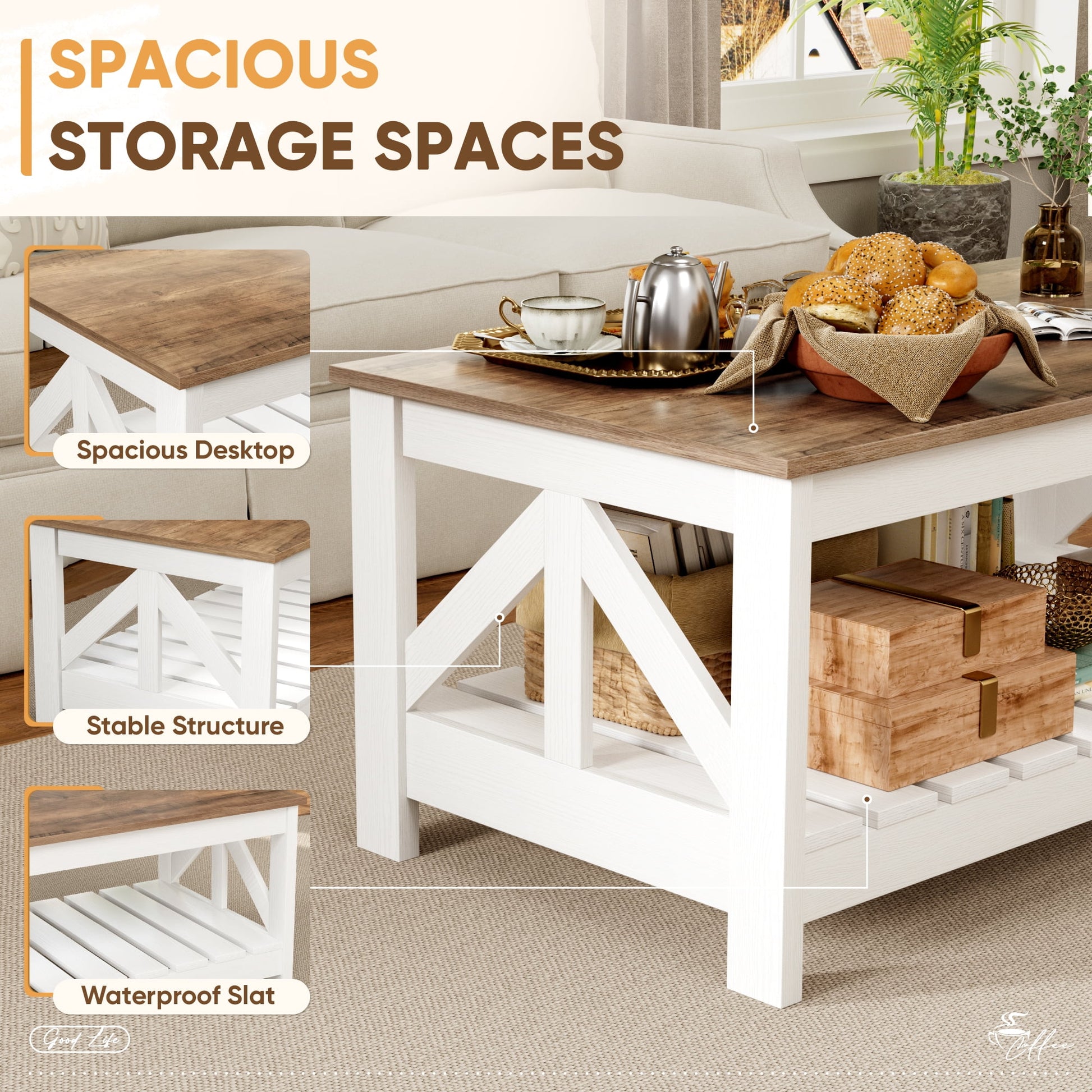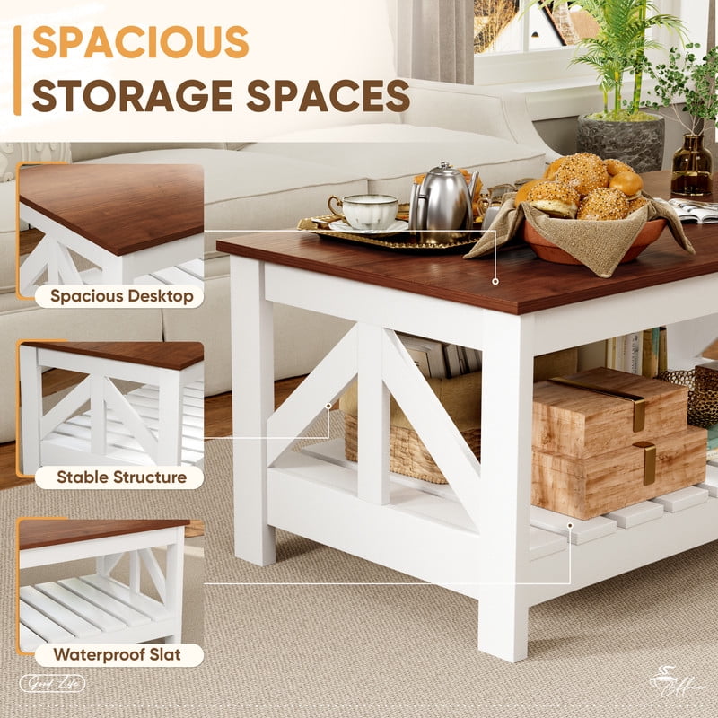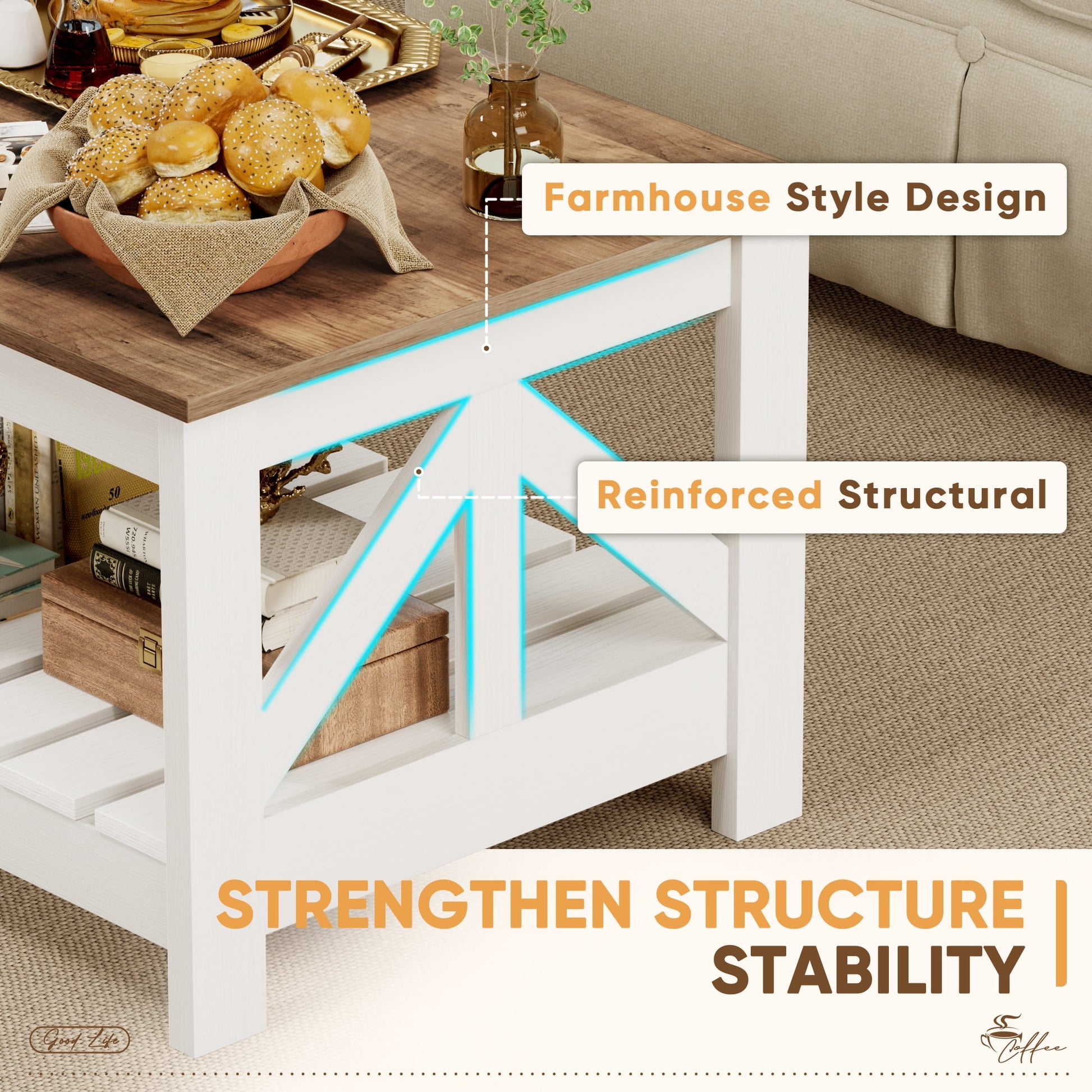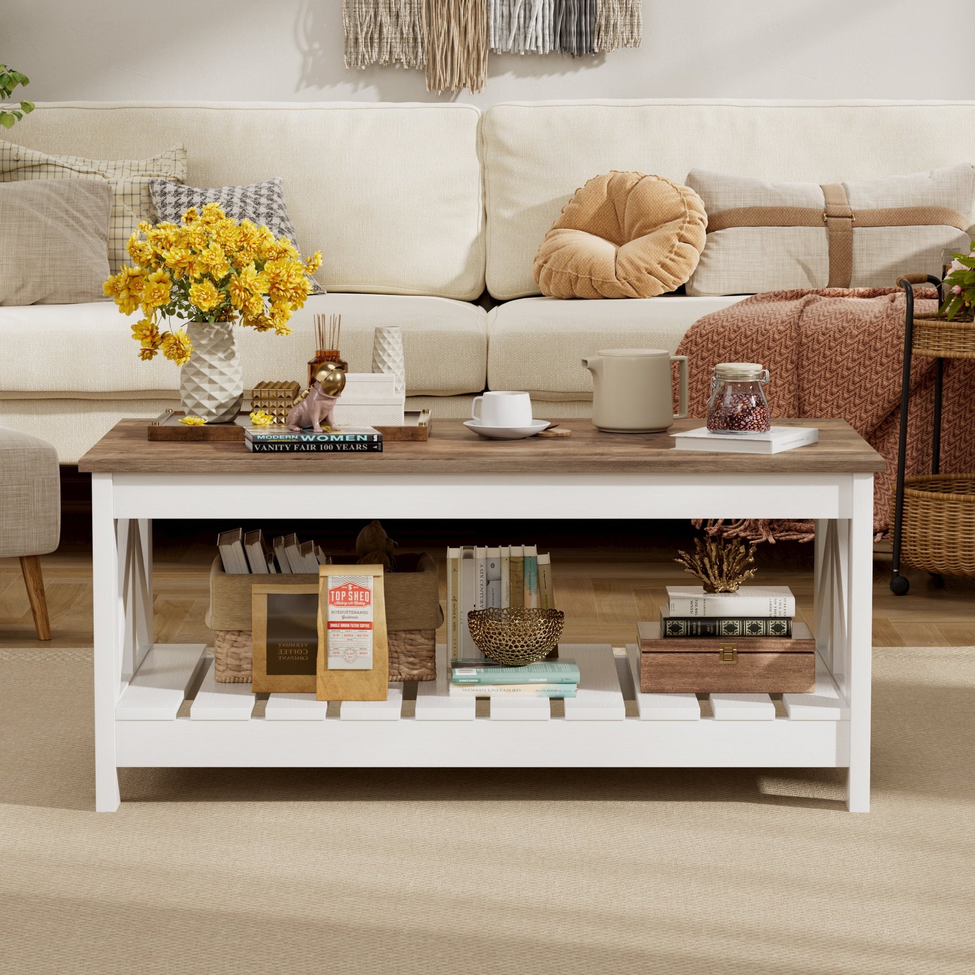 Furmax 39" Farmhouse Coffee Table for Living Room, 2-Tier Modern Living Room Center Table with Storage Shelf, Space Saving Home Furniture