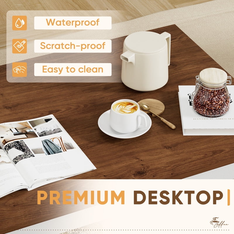 ABUNDANT STORAGE CAPACITY: This chic rectangular table melds beauty with practicality. Its spacious dual shelves significantly augment storage space, catering to home office needs, study sessions, and guest entertainment. The open shelves facilitate easy access to items at any time.