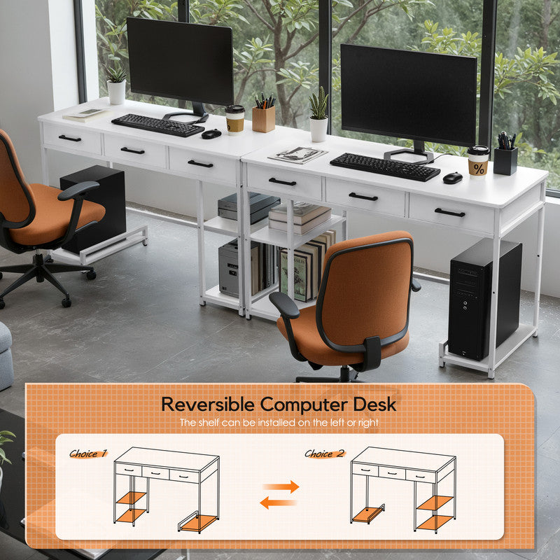 【DESK WITH FABRIC DRAWERS】: The white desk comes with fabric drawers and two storage shelves. You can easily organize files, books, magazines, etc. and use the shelves for decorative items. Plenty of space for your office or home office needs.