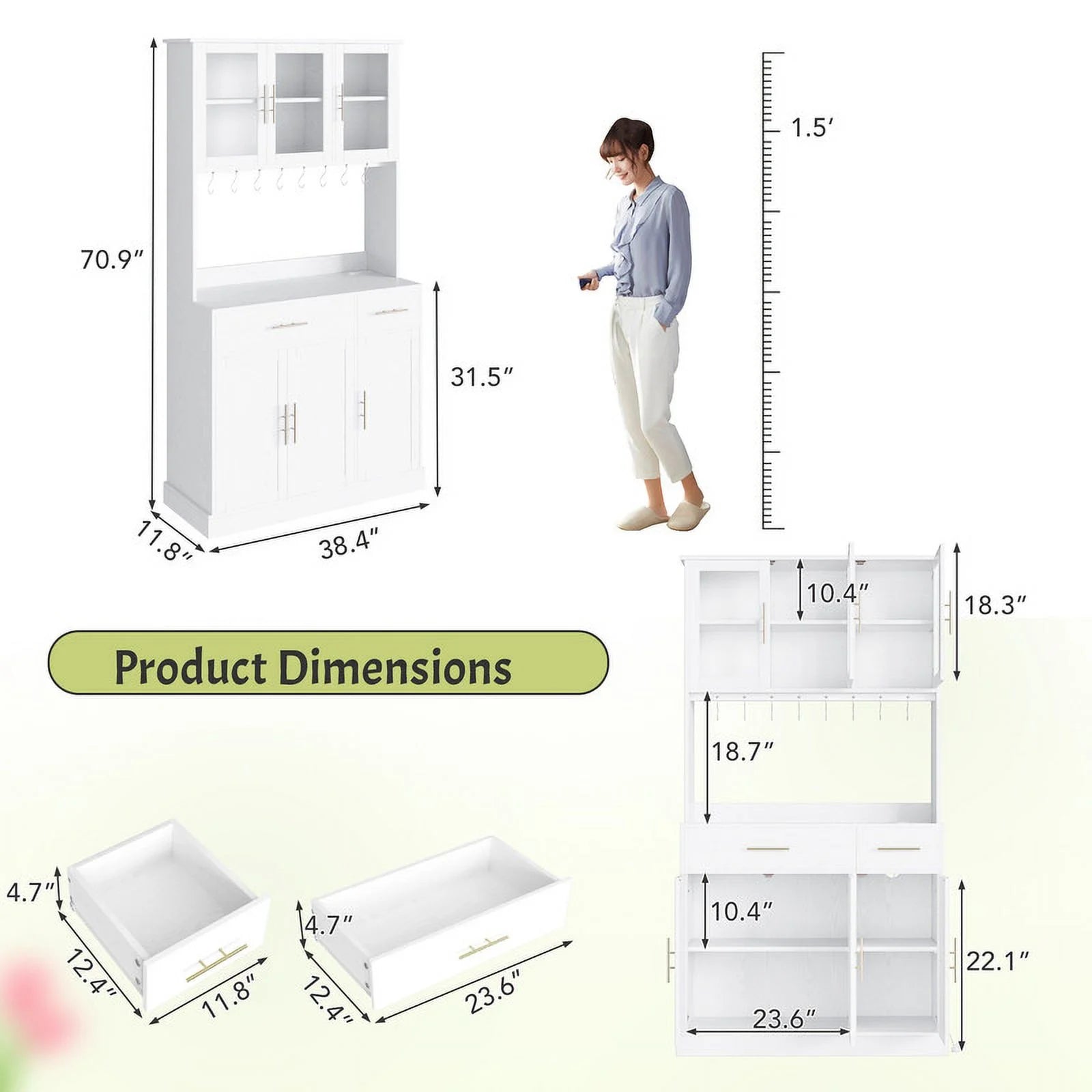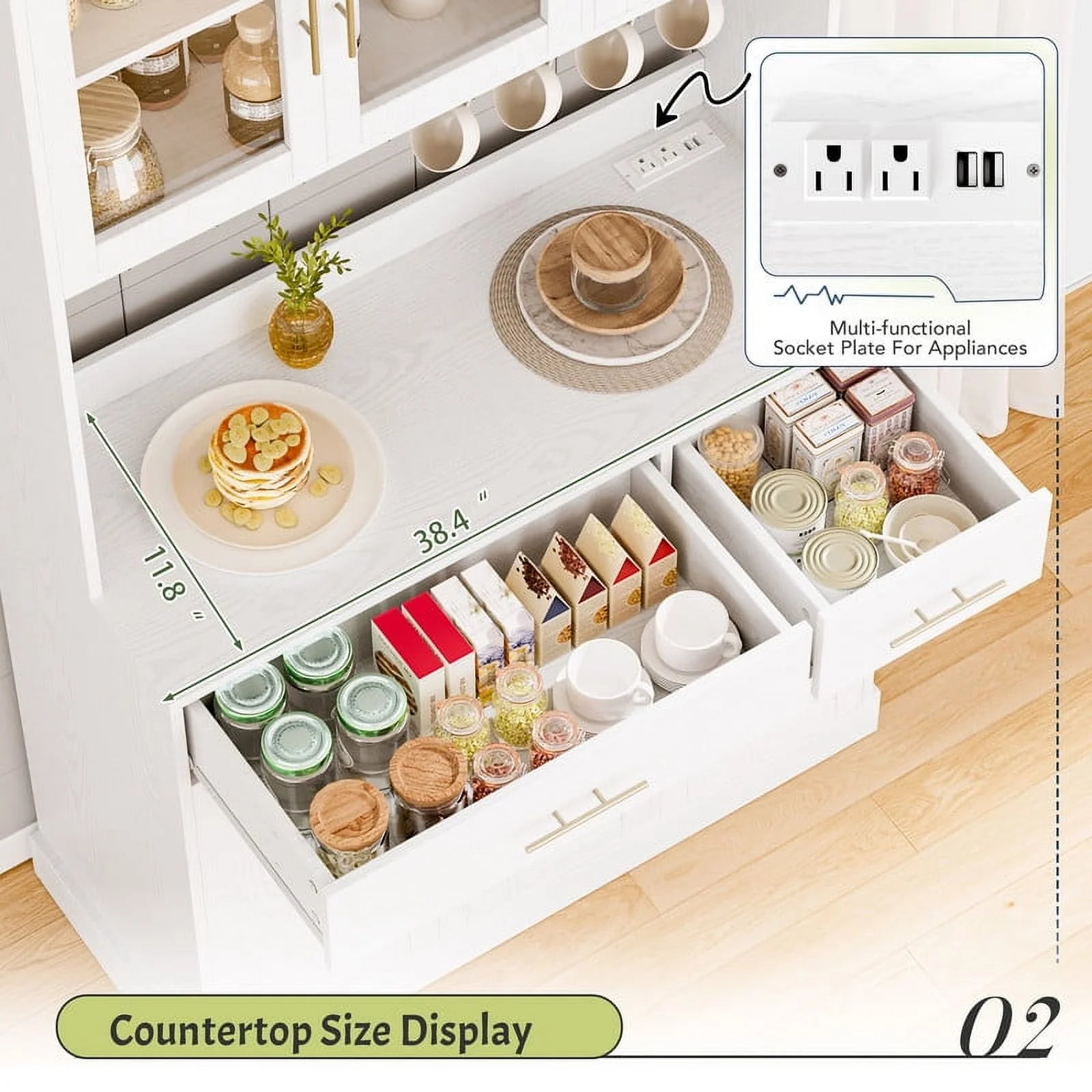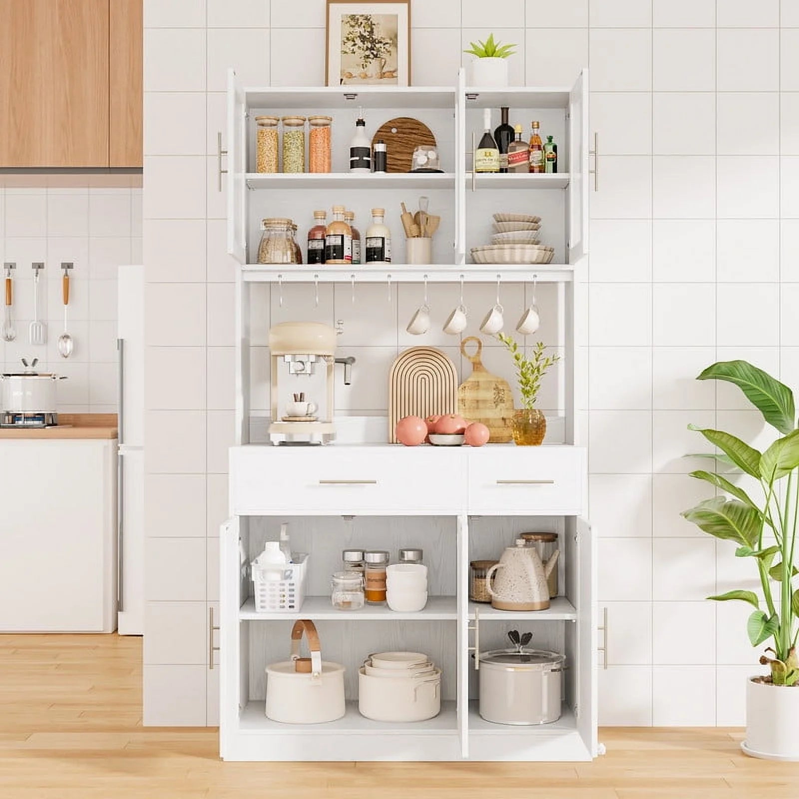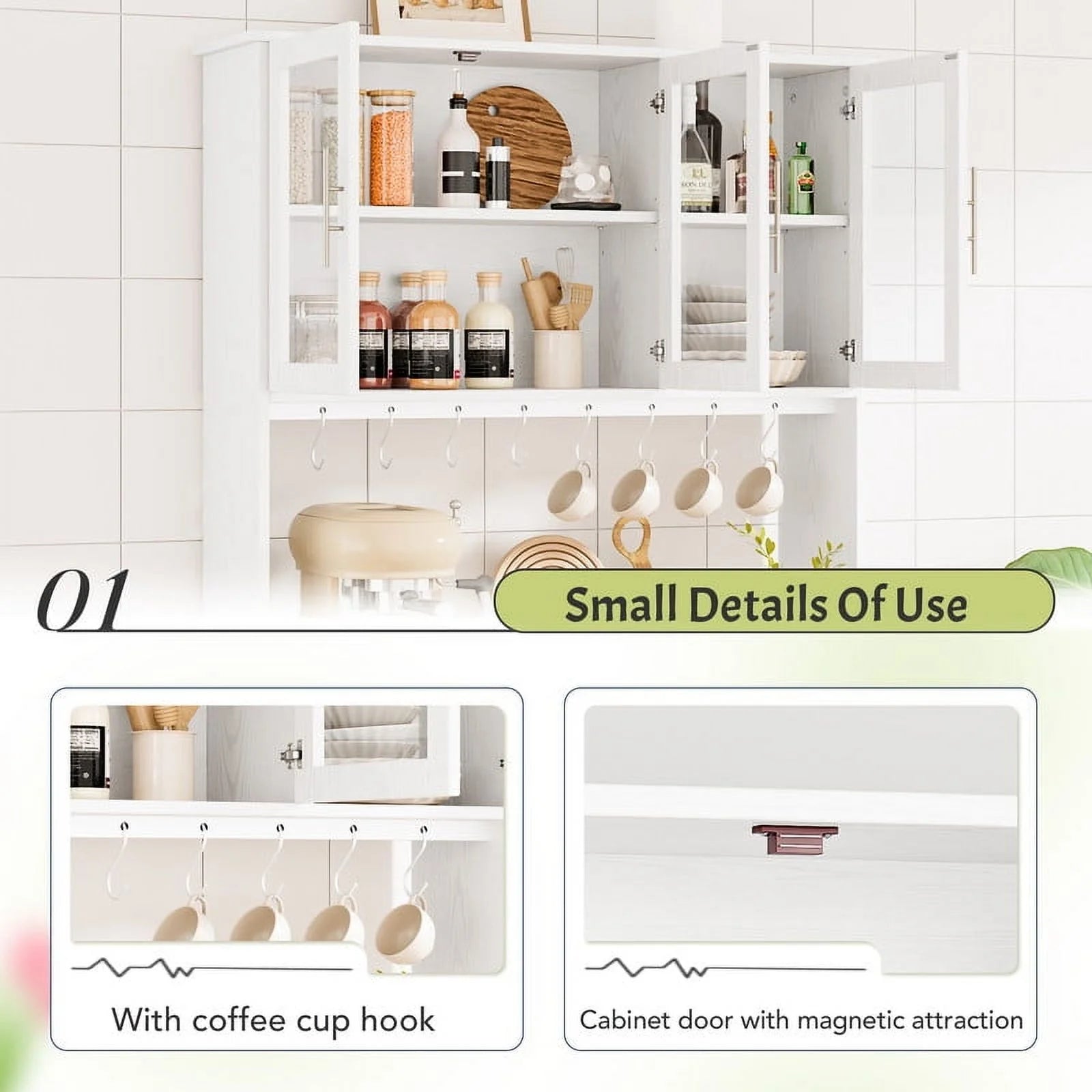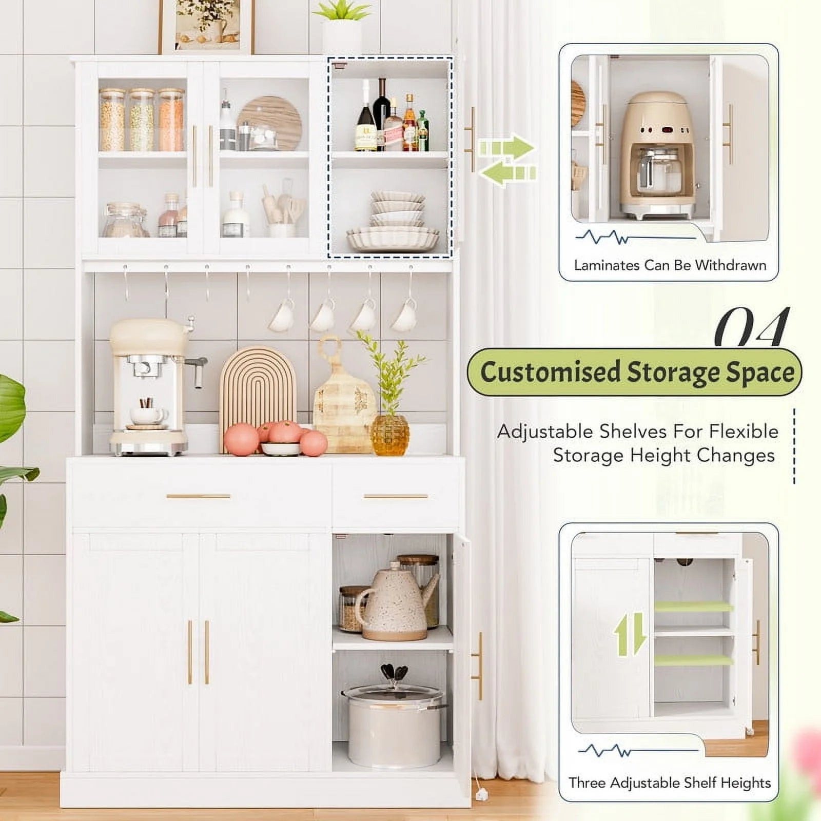 - Spacious Storage Space: Featuring multiple adjustable shelves, drawers and cup hooks, it allows you to easily organize kitchen utensils, small appliances, coffee mugs and various other items.