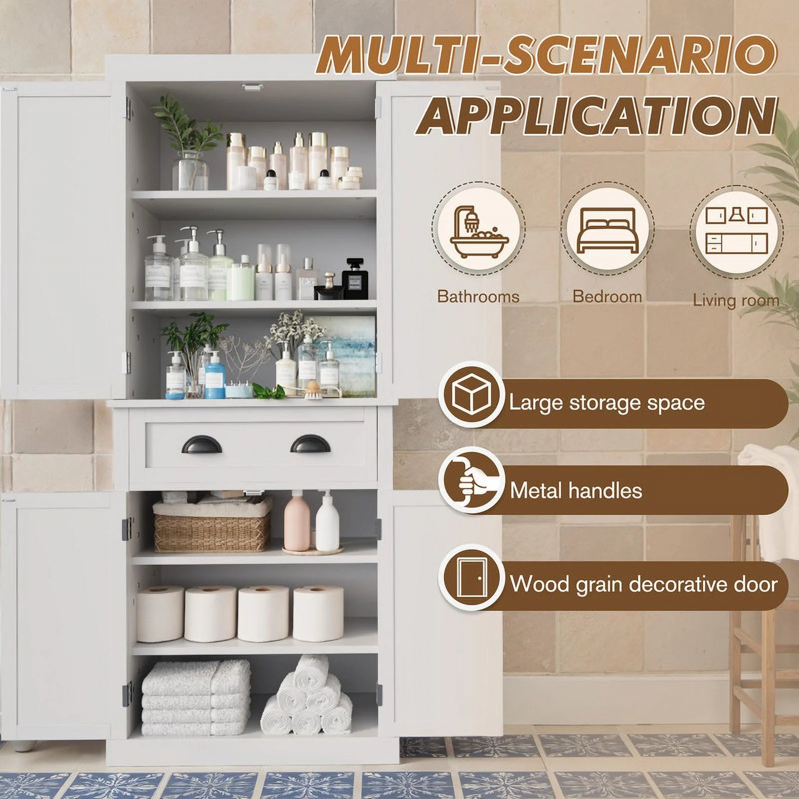 Multi-purpose Functionality: Whether you need additional storage in your kitchen, a sideboard in your dining room, or a display cabinet in your living room, this cabinet adapts to your needs seamlessly.