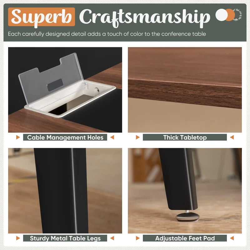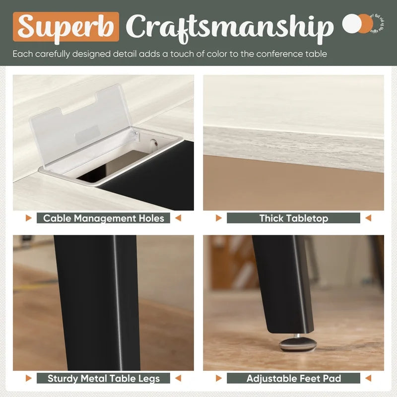 - 【SOLID & DURABLE CONSTRUCTION】: Crafted with a sturdy MDF board and metal frame, this conference table guarantees superior strength, stability, and a high weight capacity. Its waterproof finish resists scratches and is easy to clean, ensuring long-lasting performance.