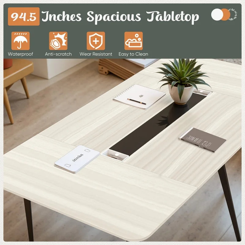- 【SPACIOUS 10-SEAT CONFERENCE TABLE】: Measuring 94.49 L x 47.24 W x 29.92 H inches, this conference table offers ample space to comfortably accommodate 8-10 participants. The generous under-table area provides plenty of legroom, ensuring comfort during long meetings.