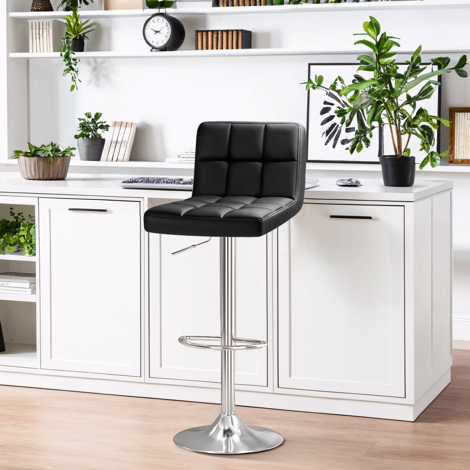 Furmax Black Adjustable Armless Swivel Bar Stools with PU Leather