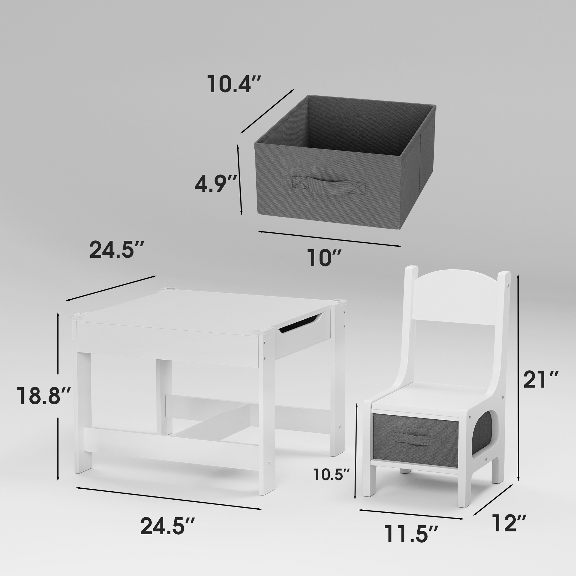 Table: 24.53"D x 24.53"W x 18.9"H
