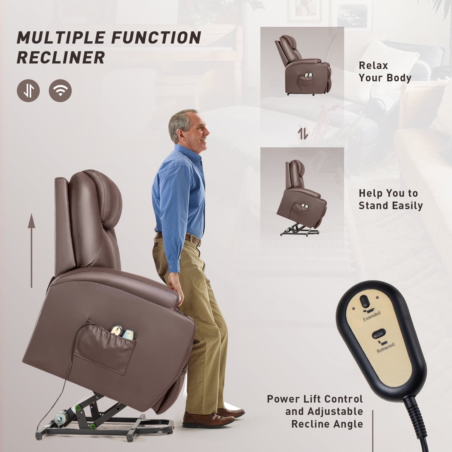 Furmax Electric Reclining Chair Elderly Lift Recliner with Massage and Heating Faux Leather