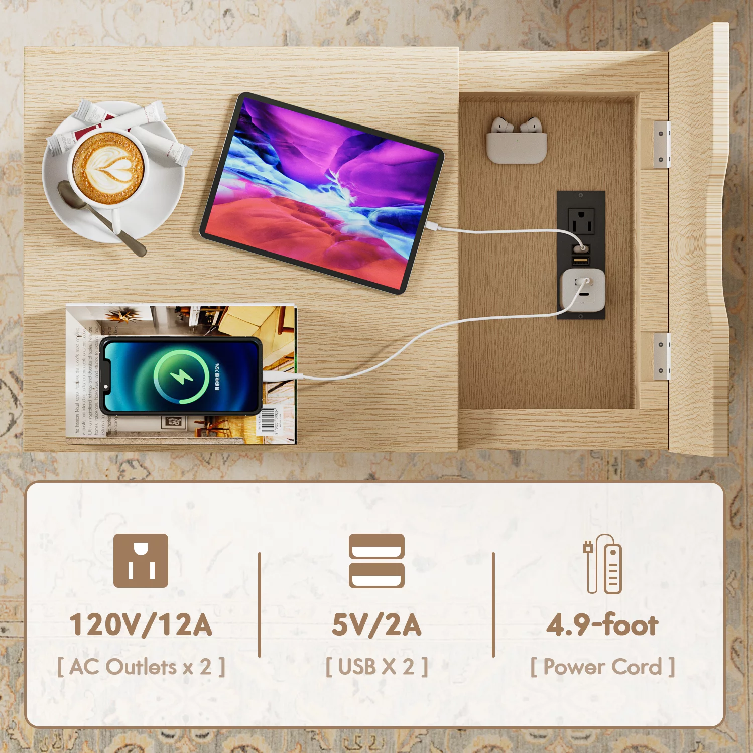 Furmax End Table,Nightstand with Charging Station, Side Table with Drawer & USB Ports & Power Outlets,Beige