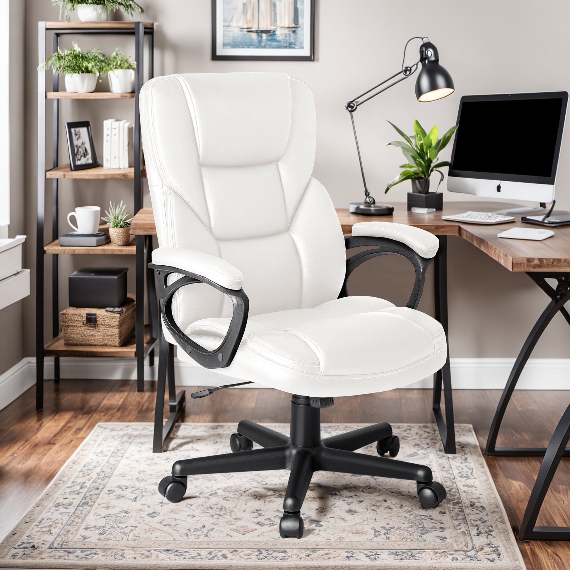 Comfortable high back office chair with cushioned back and seat upholstered provide extra support, large thick pad, soft texture slow down the pressure of the sedentary.
