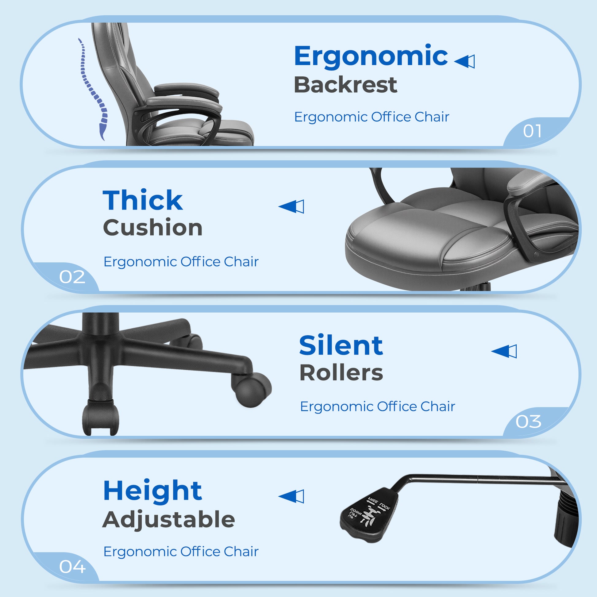 Furmax High-back Executive Office Chair With Lumbar Support Height Adjustable Swivel Seat PU Leather