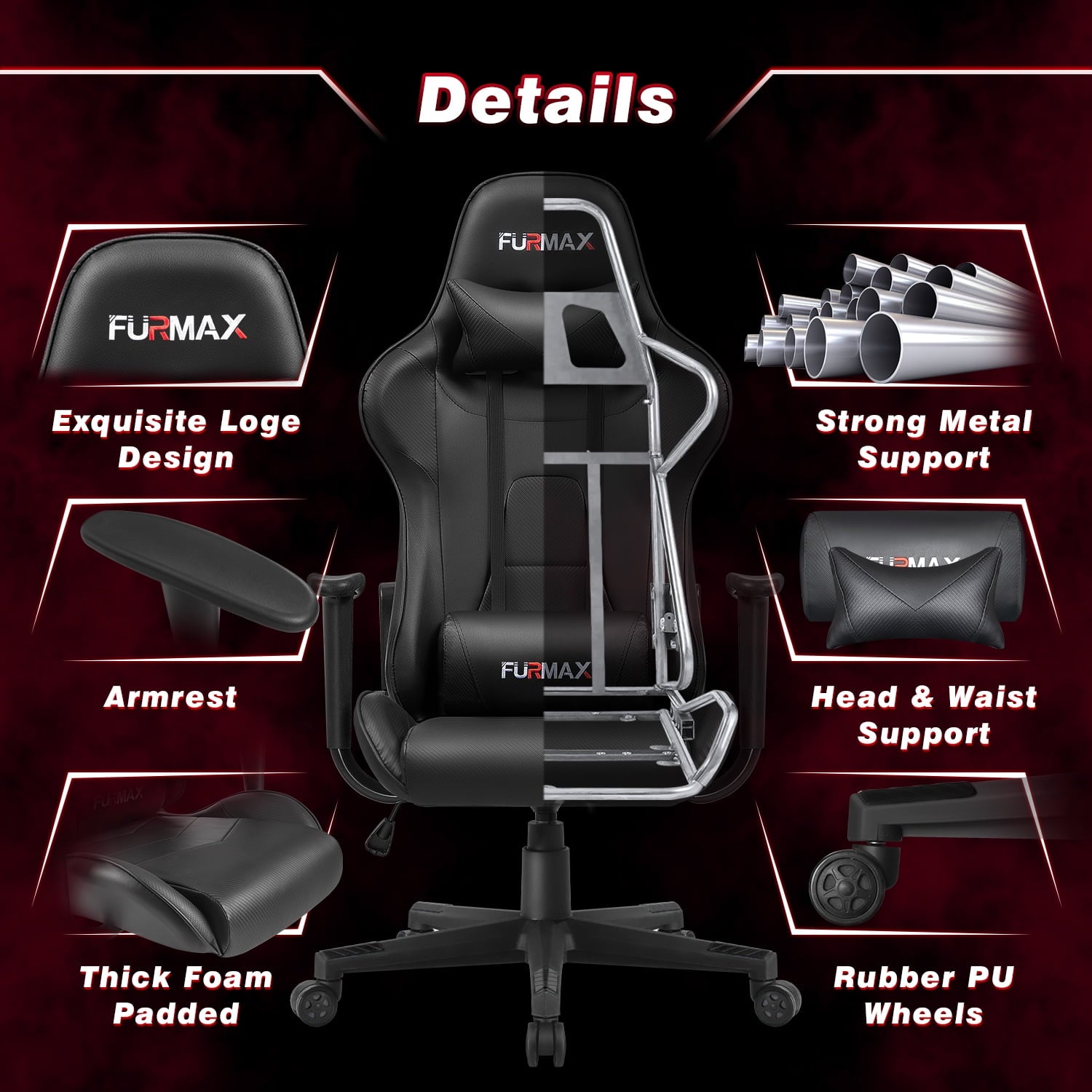 Furmax High-Back Gaming Office Chair Ergonomic Racing Style Adjustable Height Executive Computer Chair with Adjustable Headrest and Lumbar Pillow