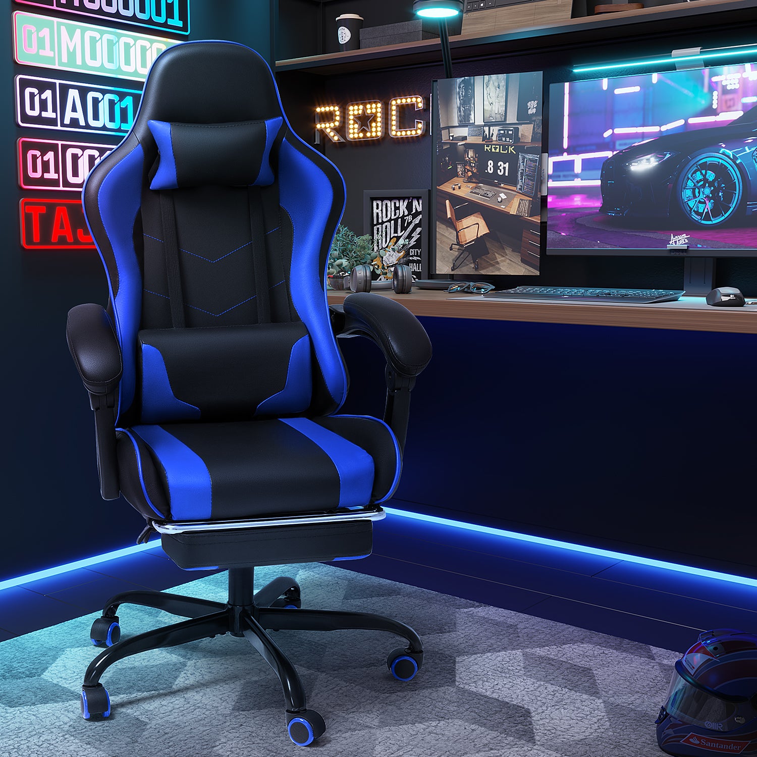 - HIGH QUANTITY: This gaming chair is wrapped in high quality PU leather, which is soft, comfortable and breathable to reduce sweating in the lumbar and back. The seat and backrest are filled with thick sponges that fits your body perfectly and gives you a highly comfortable rebound support experience. With the heavy-duty base and steel tube support at the bottom of the chair, the chair is stable that it can reach a maximum load of 300lbs.