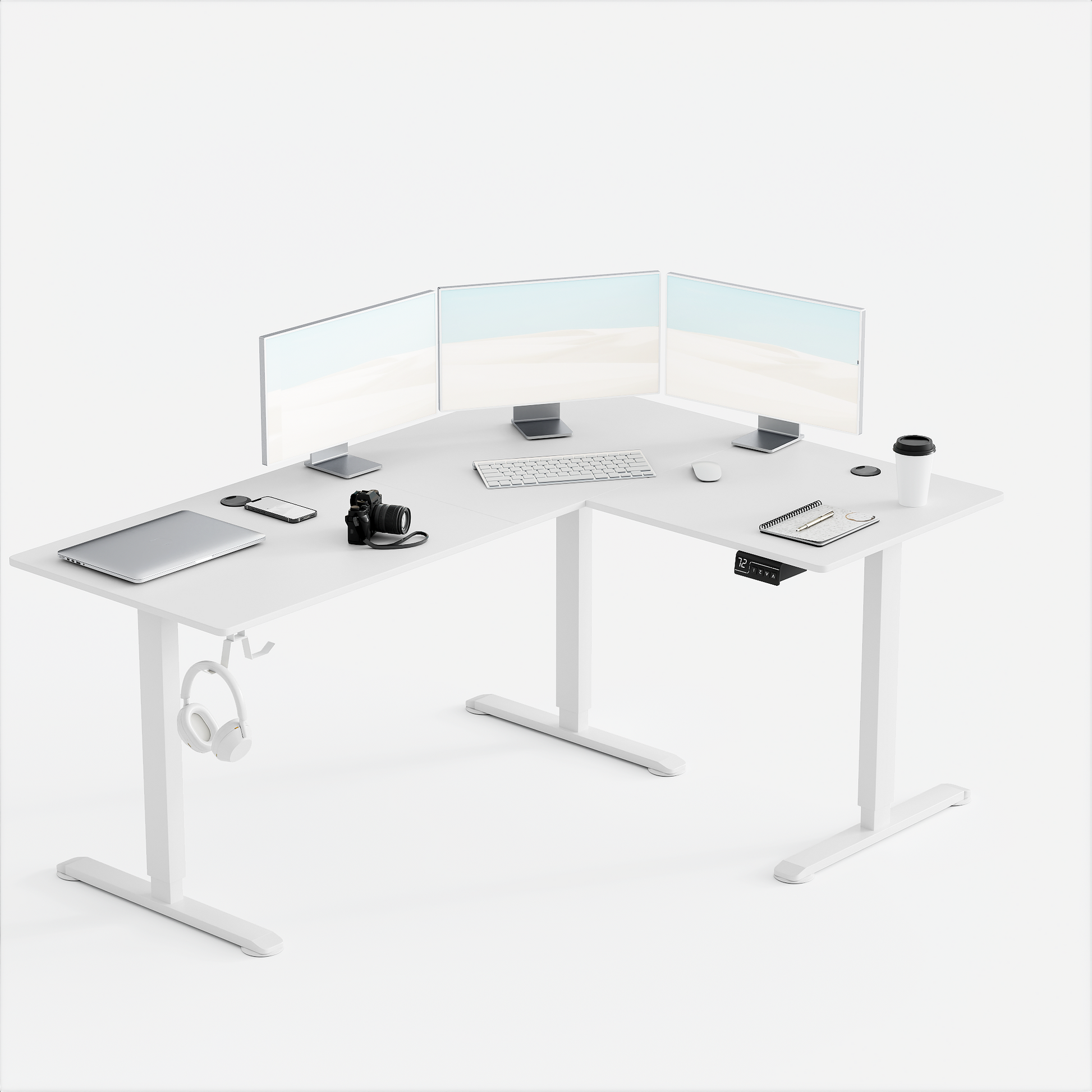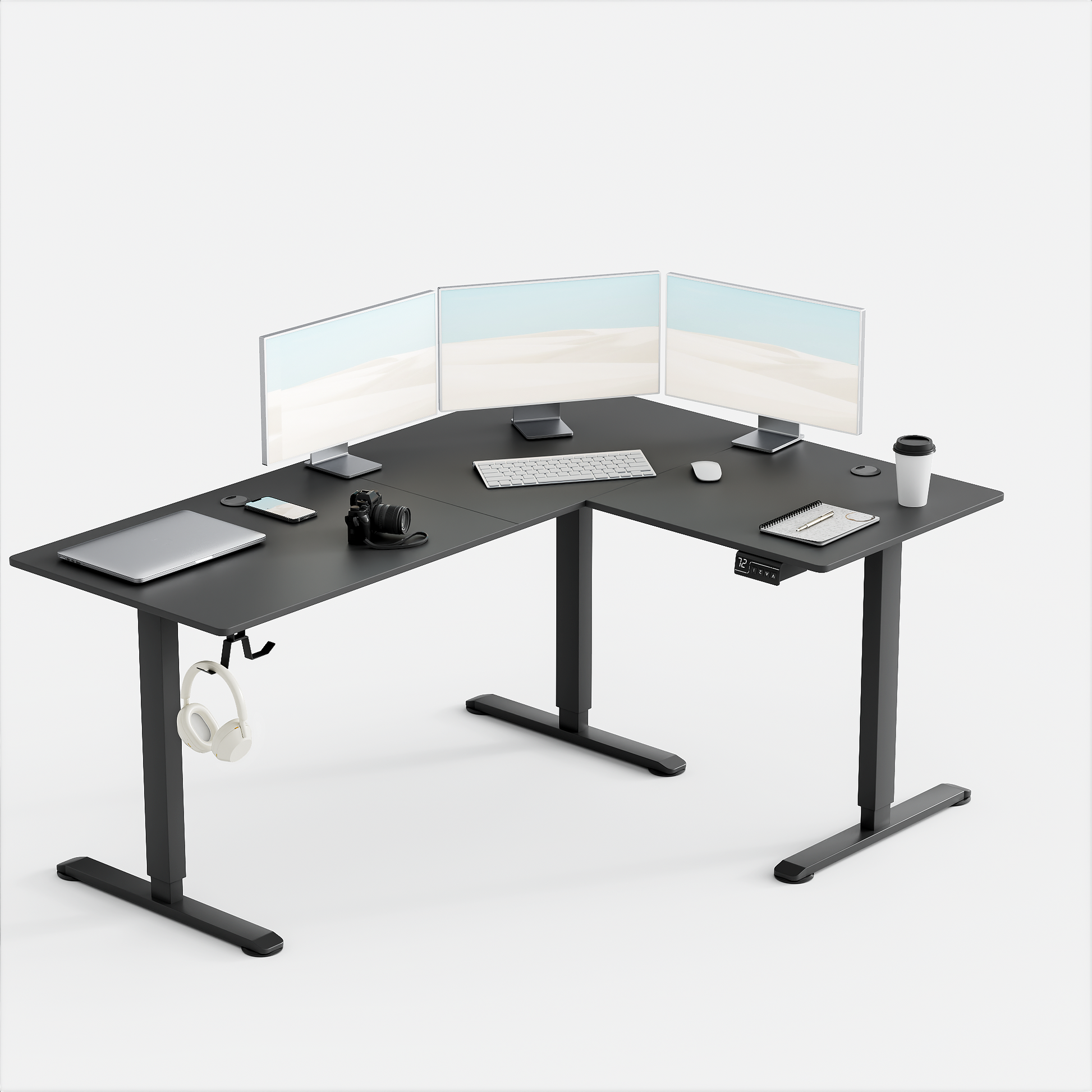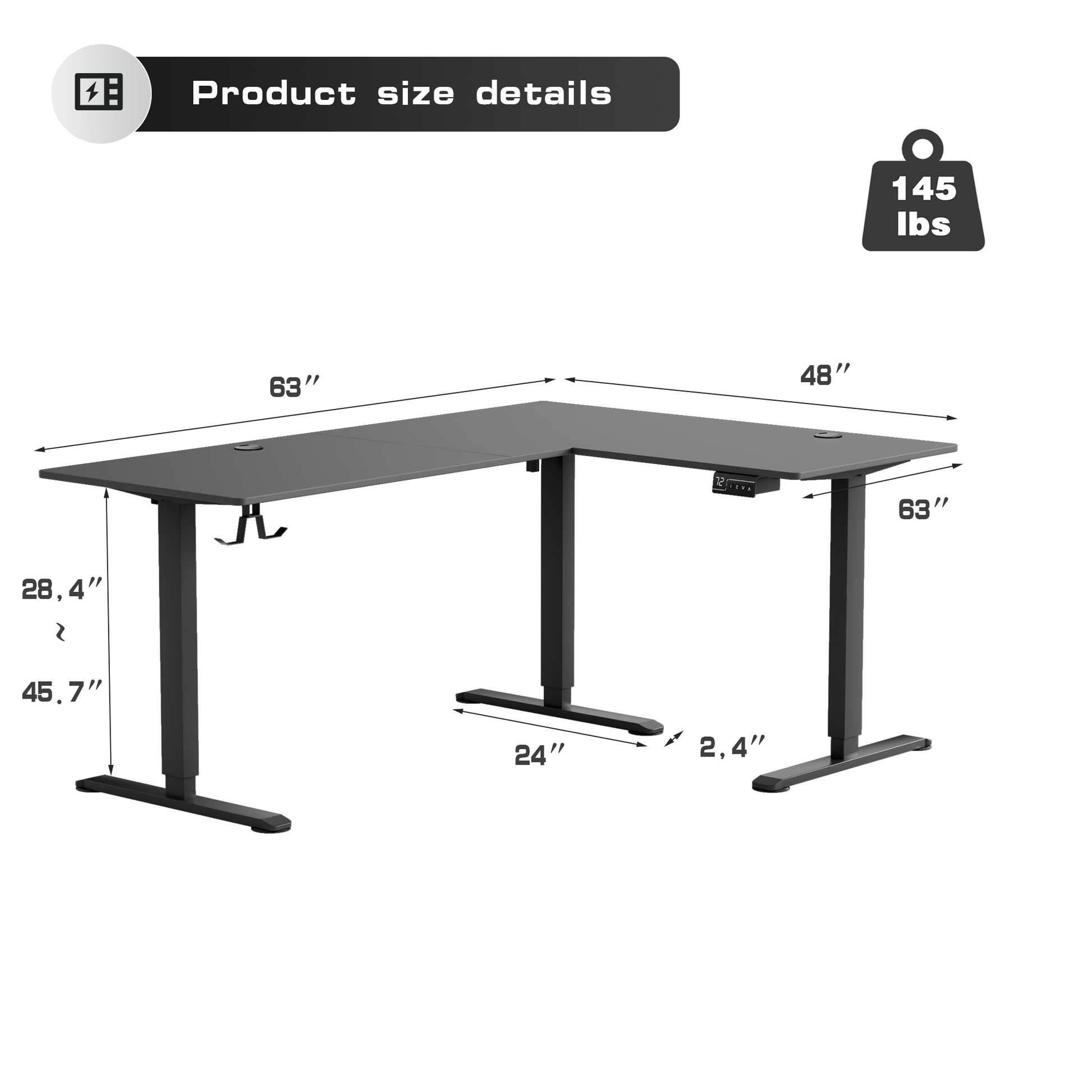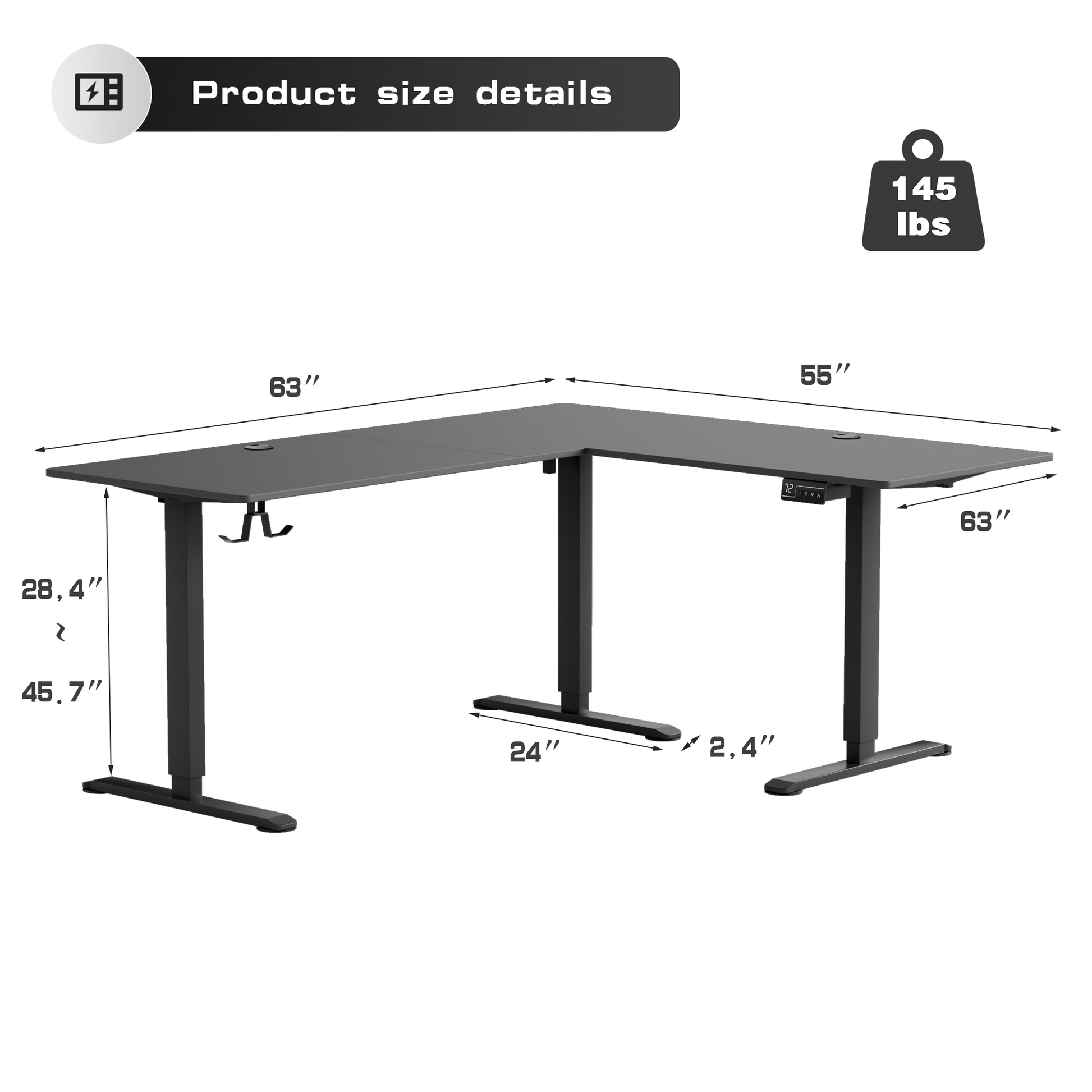 Furmax L-shaped Electric Sit-Stand Desk 63in Wide Electric Stand Up Height Adjustable Lifting Range 28~46in Computer Workstation Standing Desk Height Adjustable