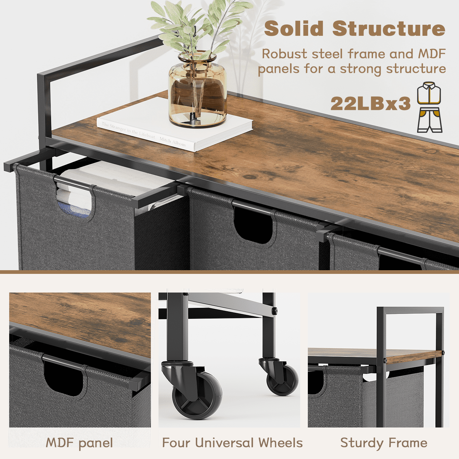 Furmax Laundry Sorter Organizer, Laundry Hamper with 3 Removable Laundry Sorter Bags and Top Shelf, Clothes Hamper for Laundry Room, Bathroom