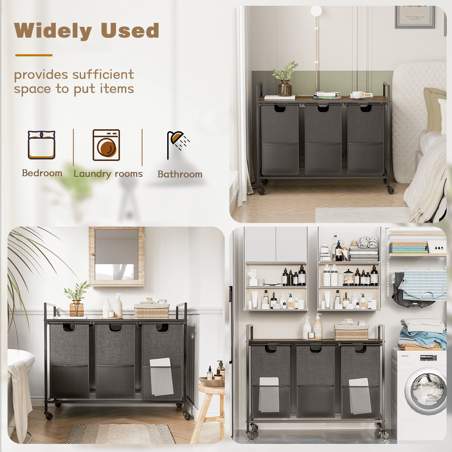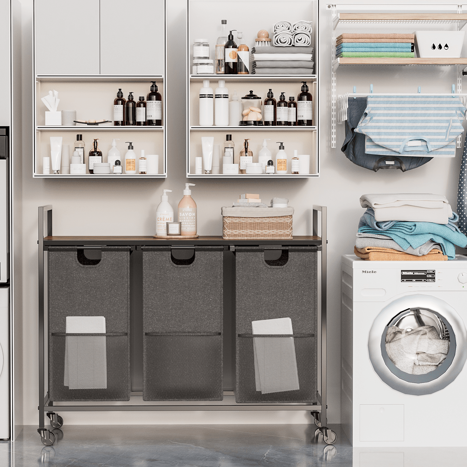 - Multi-functional Storage: Three pull-out fabric baskets provide convenient segmented storage space, helping you easily sort and organize dirty laundry.