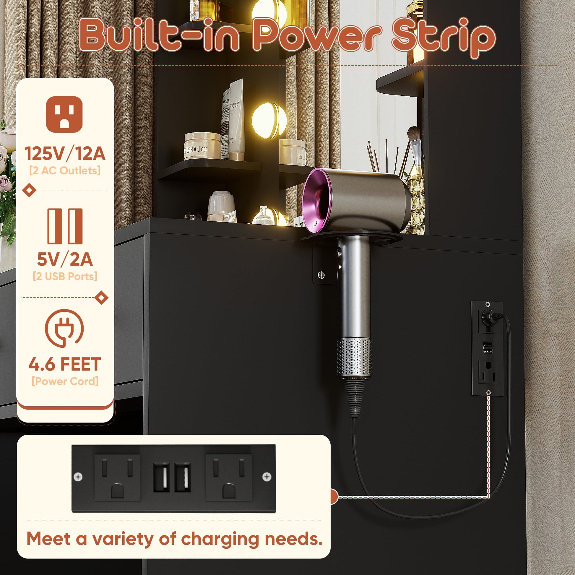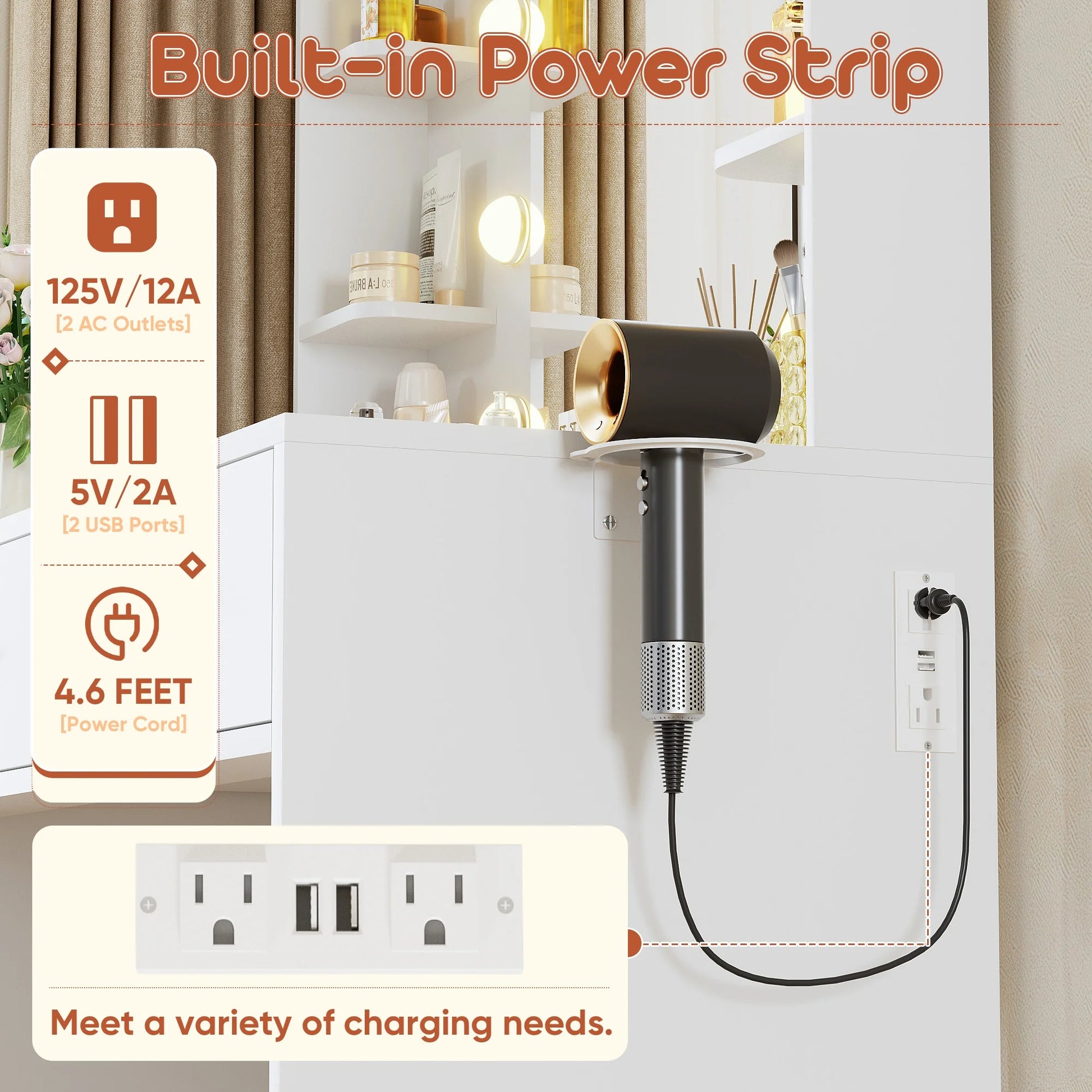 - Side Socket: The side sockets of the vanity table are conveniently placed, allowing you to easily use hair dryers, curling irons, beauty tools, and other small appliances without the need to search for power outlets.