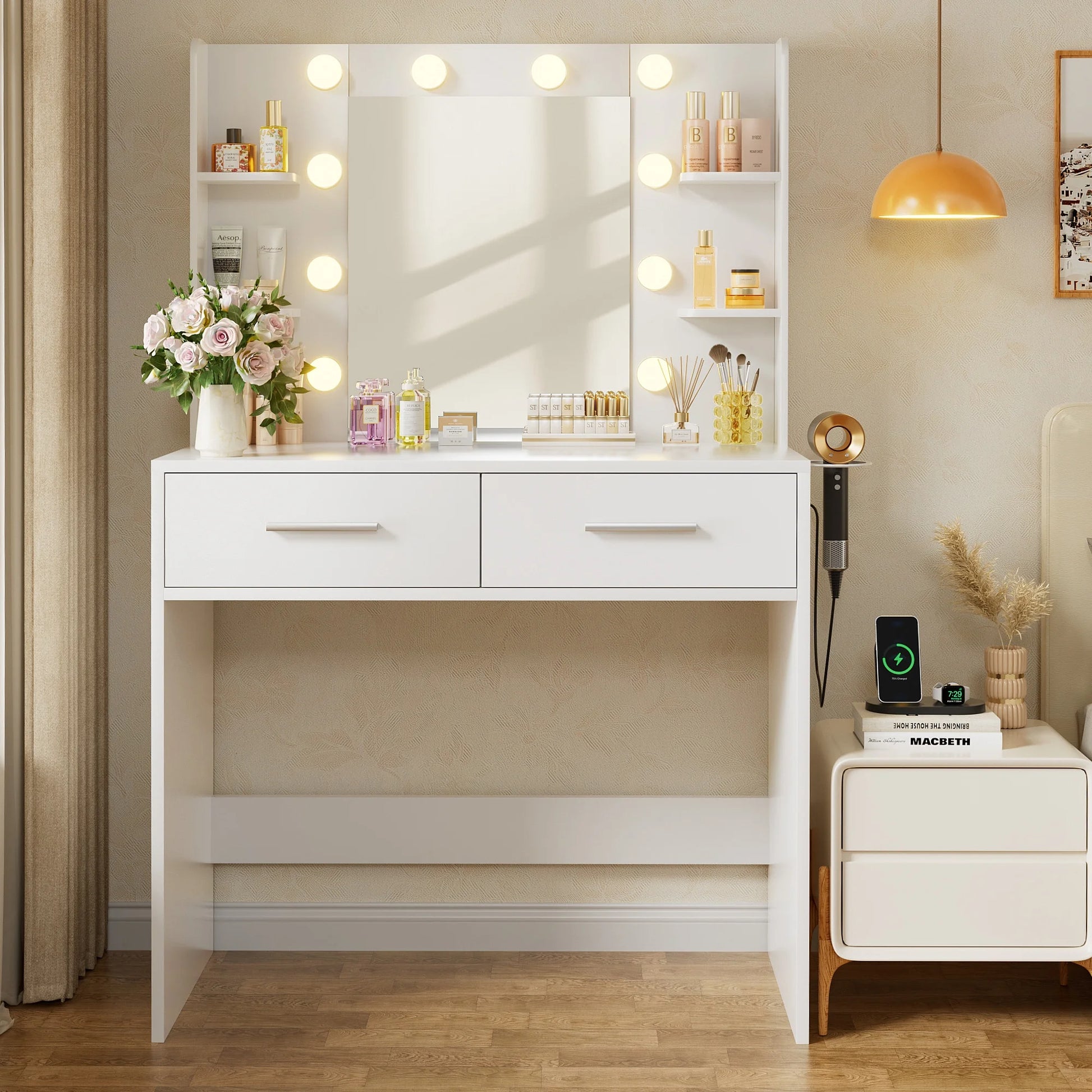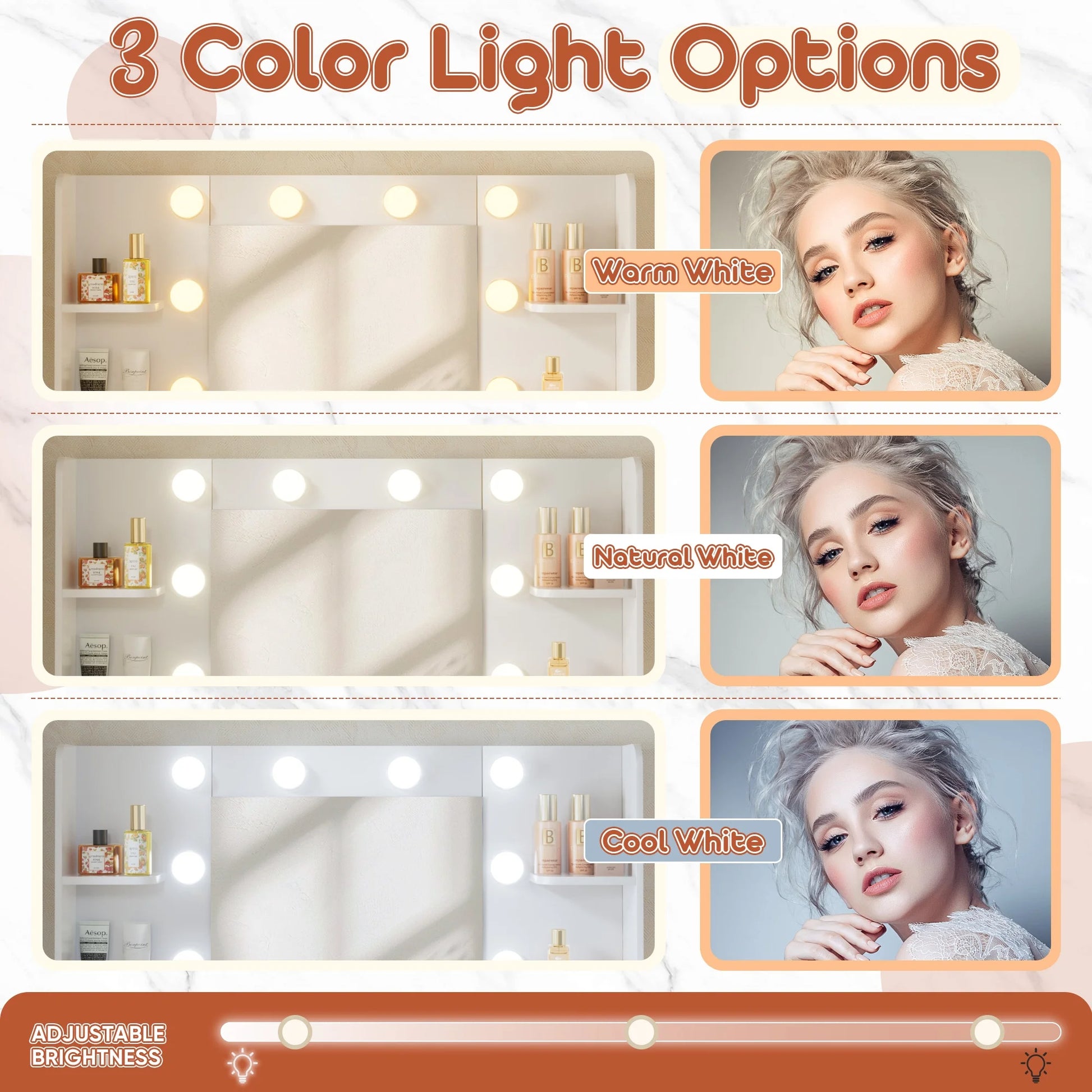 - Three Light Modes: The vanity desk features an adjustable lighting system with three color temperature settings, allowing you to choose the perfect light for everything from detailed daily makeup to gentle nighttime skincare.