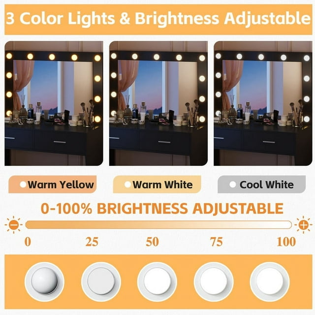 - Multiple Light Adjustments: Enhancing your space with a touch of glamour, the 11 Hollywood-style bulbs offer both brightness for flawless makeup application and dimmable options to tailor the lighting to your liking. Whether perfecting your makeup, styling your hair, or capturing photos and videos, these bulbs create an ideal setting for all your beauty needs.
