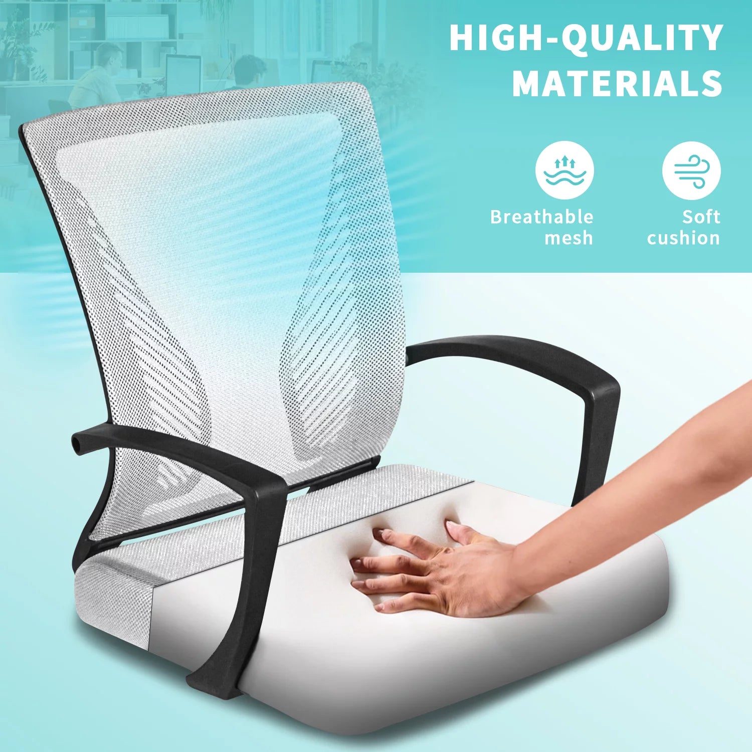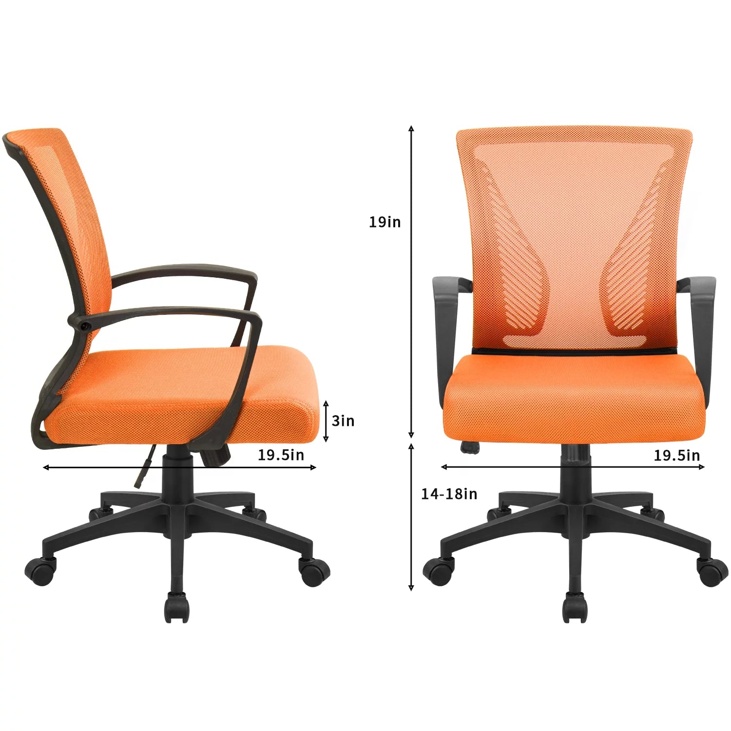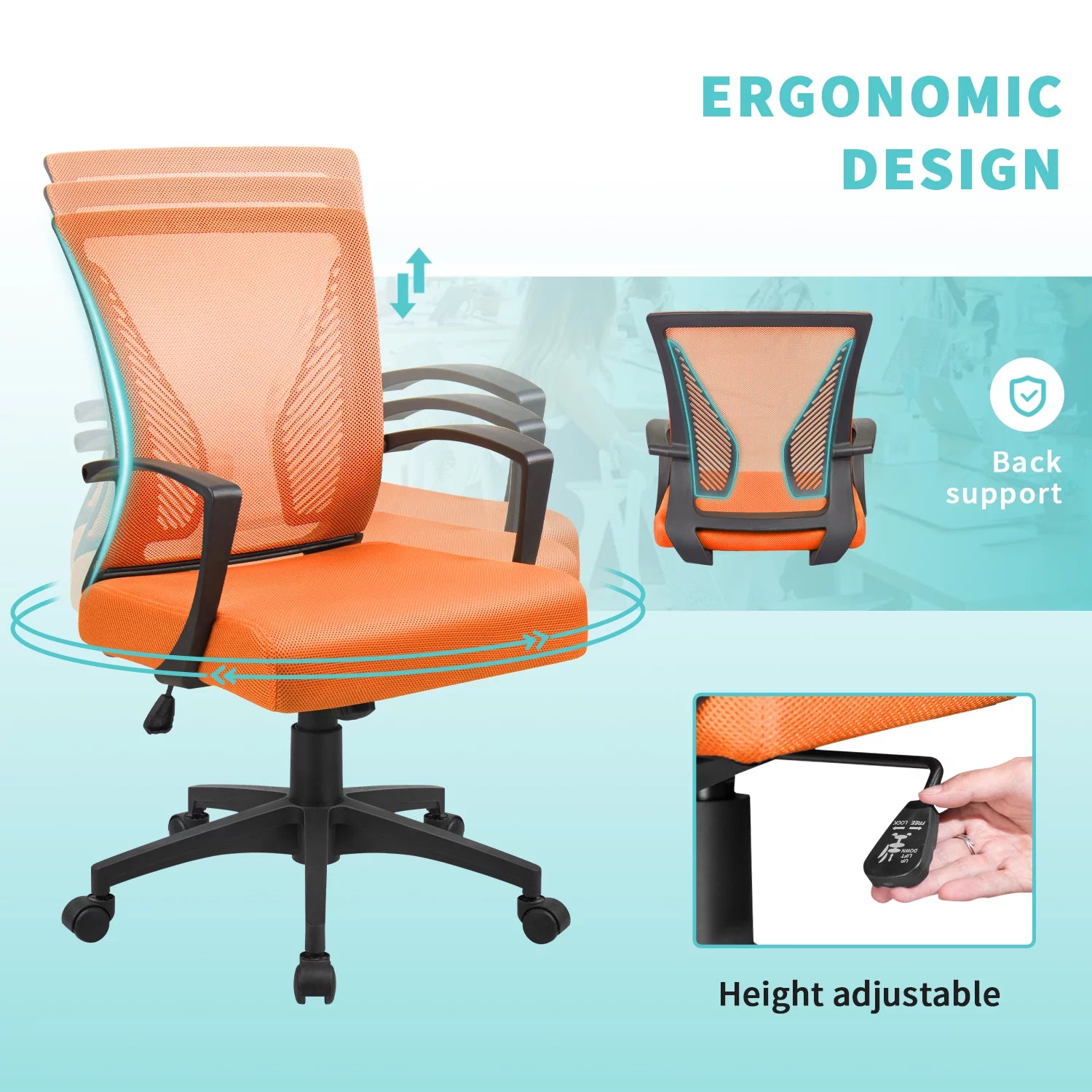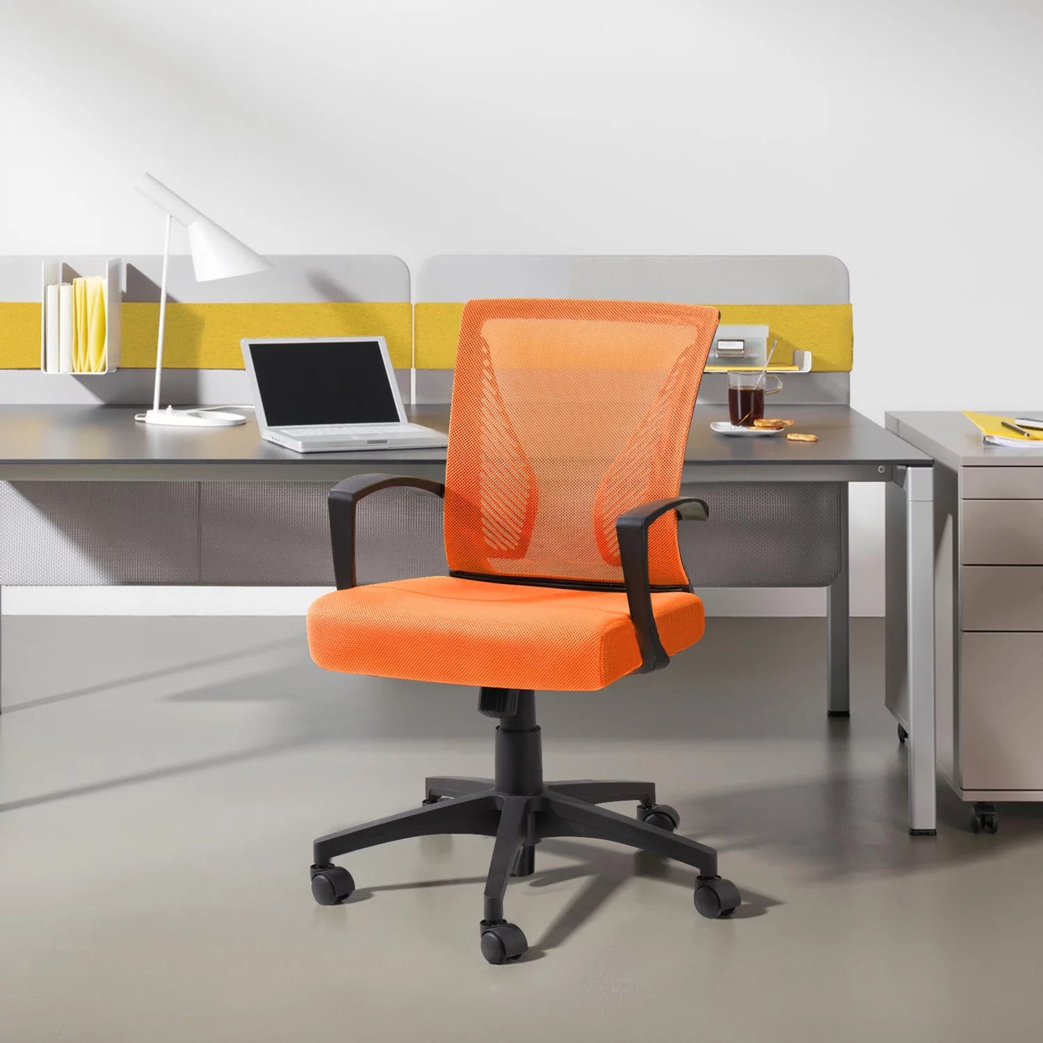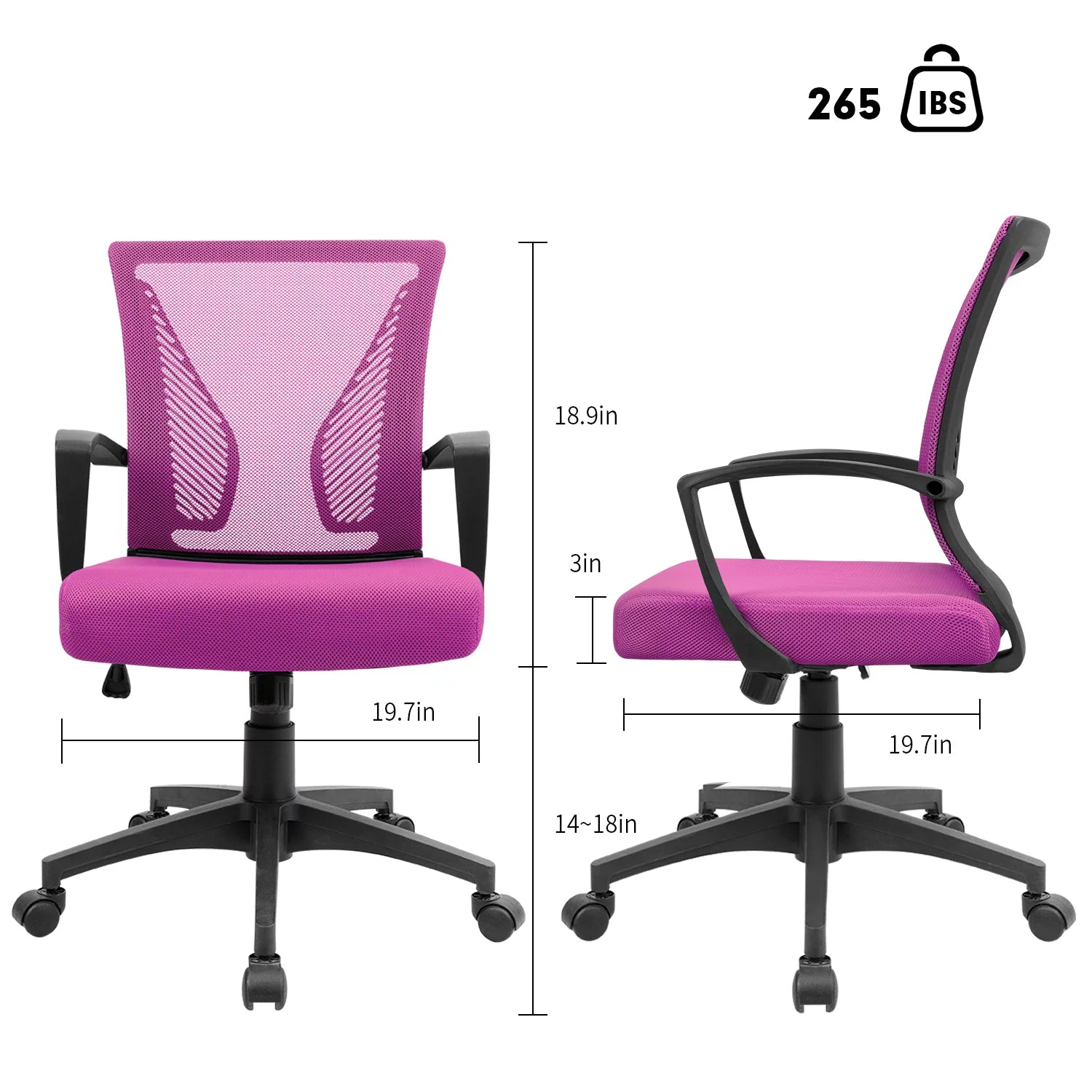 Furmax mid-back adjustable office chair is a good choice for your office. Ergonomic design with lumbar support can provide you with super comfort. Updated thick padded seat. The wing-type back supports. A soft seat and breathable mesh back can avoid backache and sweat. 5-star heavy-duty base with 360-degree swivel wheels, running smoothly on floors, more reliable and sturdier, maximum capacity up to 265 lbs.