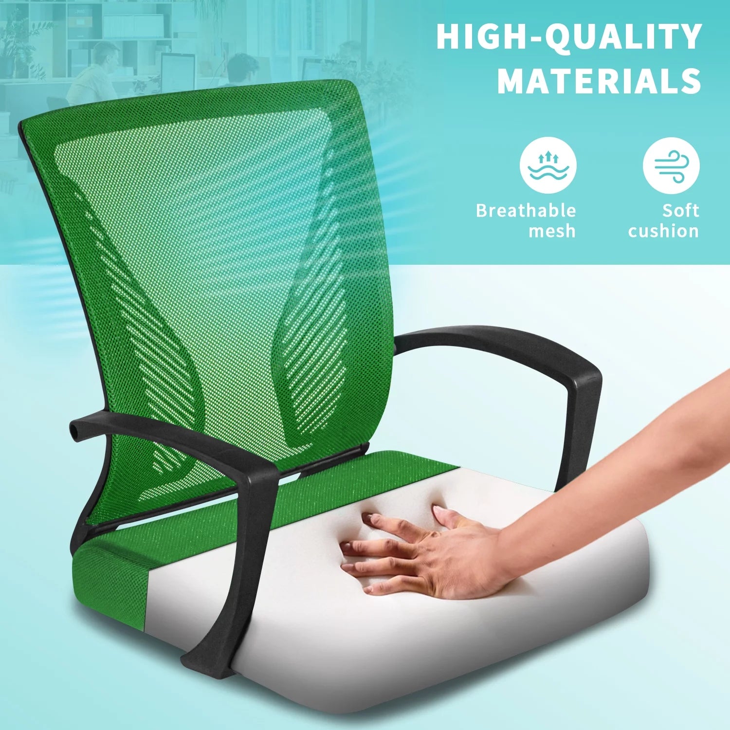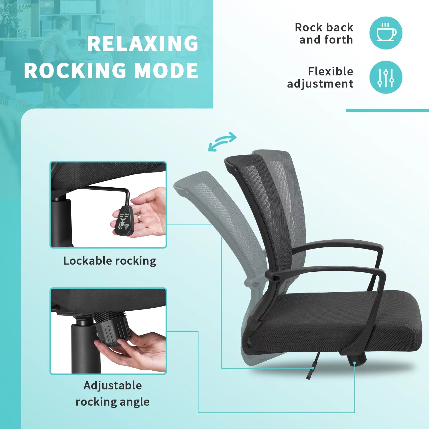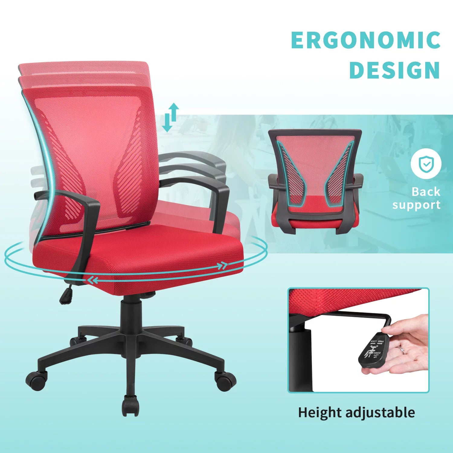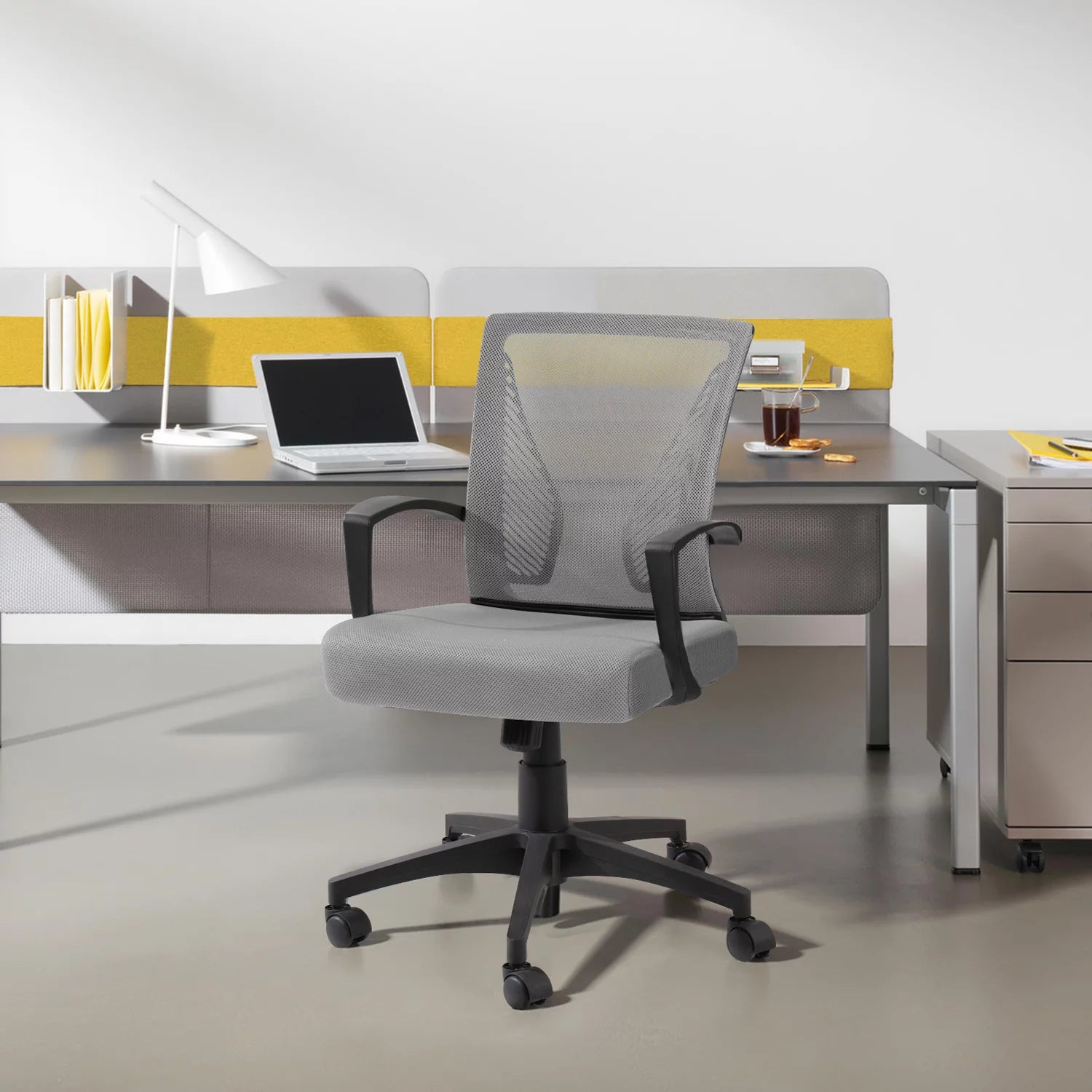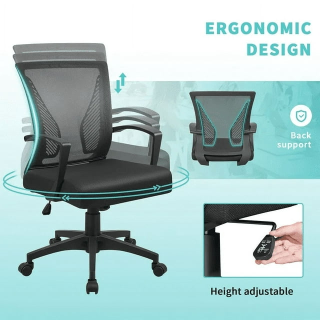 Furmax mid-back adjustable office chair is a good choice for your office. Ergonomic design with lumbar support can provide you with super comfort. Updated thick padded seat. The wing-type back supports. A soft seat and breathable mesh back can avoid backache and sweat. 5-star heavy-duty base with 360-degree swivel wheels, running smoothly on floors, more reliable and sturdier, maximum capacity up to 265 lbs.