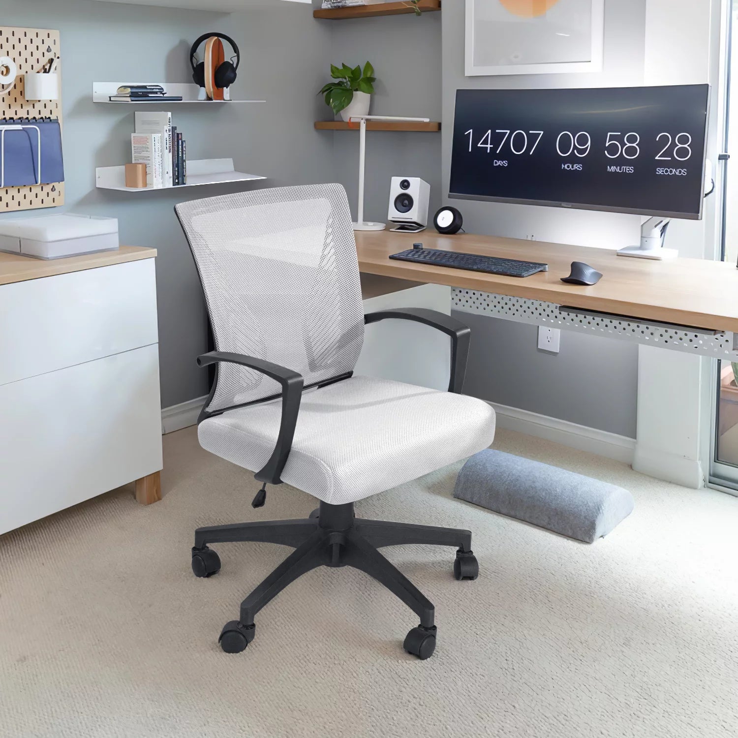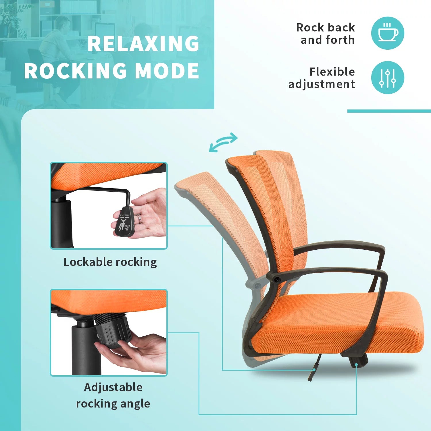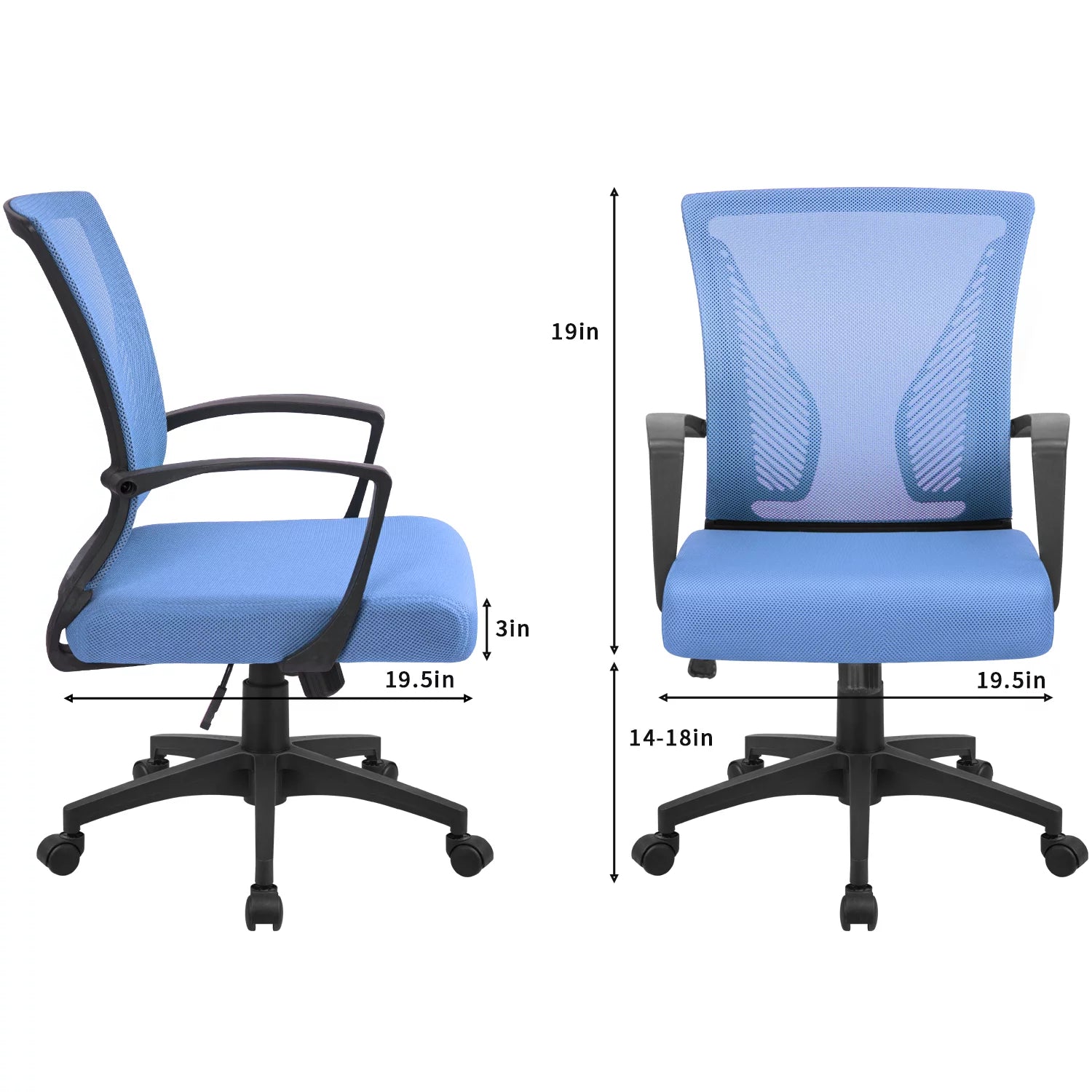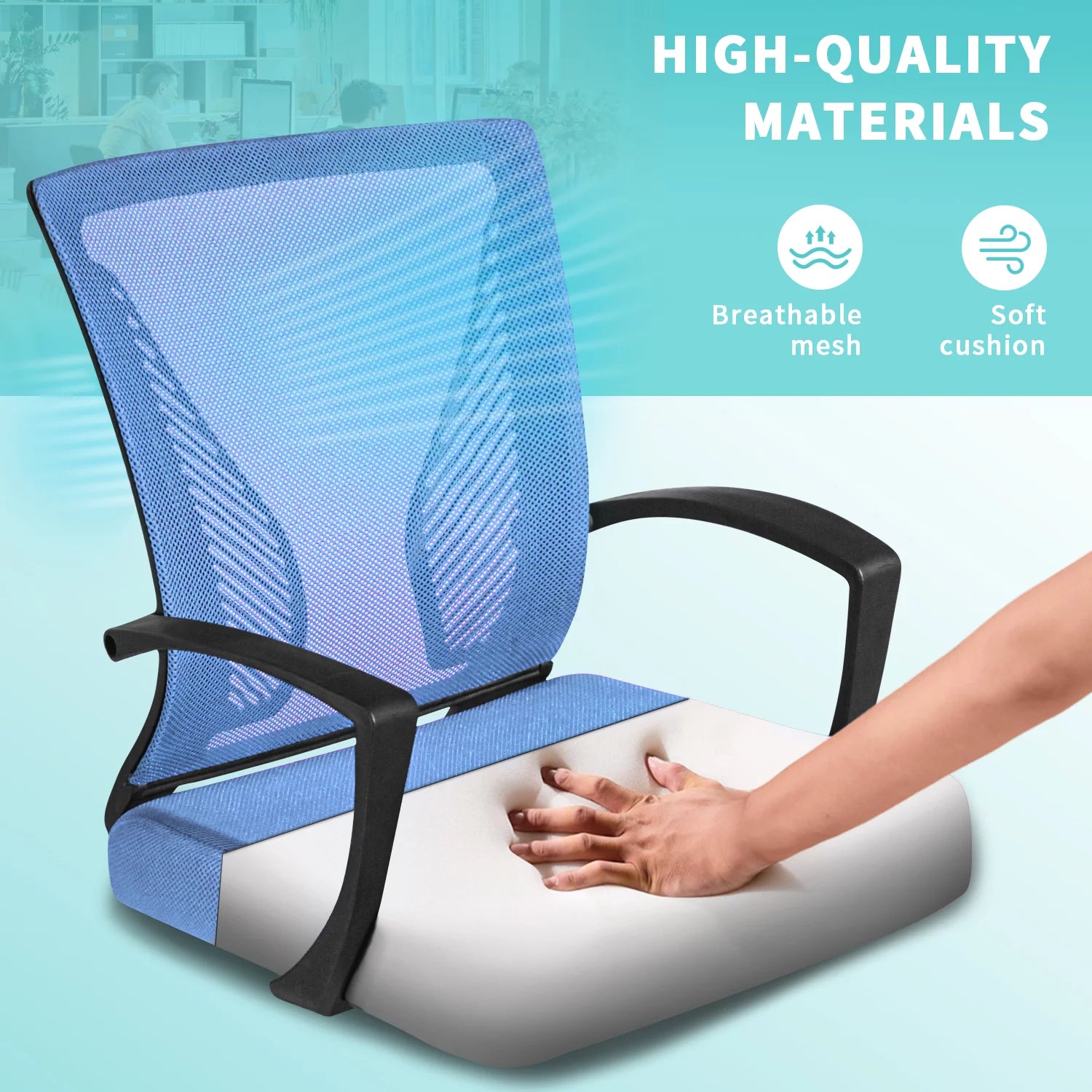 Furmax mid-back adjustable office chair is a good choice for your office. Ergonomic design with lumbar support can provide you with super comfort. Updated thick padded seat. The wing-type back supports. A soft seat and breathable mesh back can avoid backache and sweat. 5-star heavy-duty base with 360-degree swivel wheels, running smoothly on floors, more reliable and sturdier, maximum capacity up to 265 lbs.