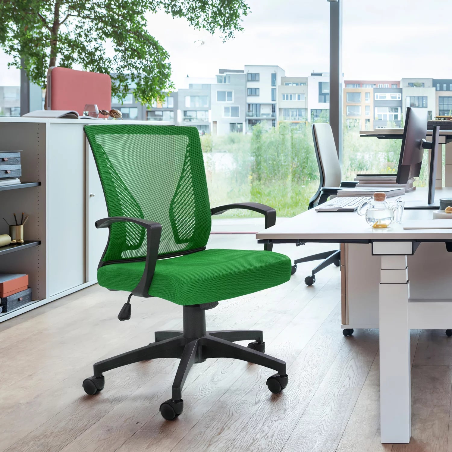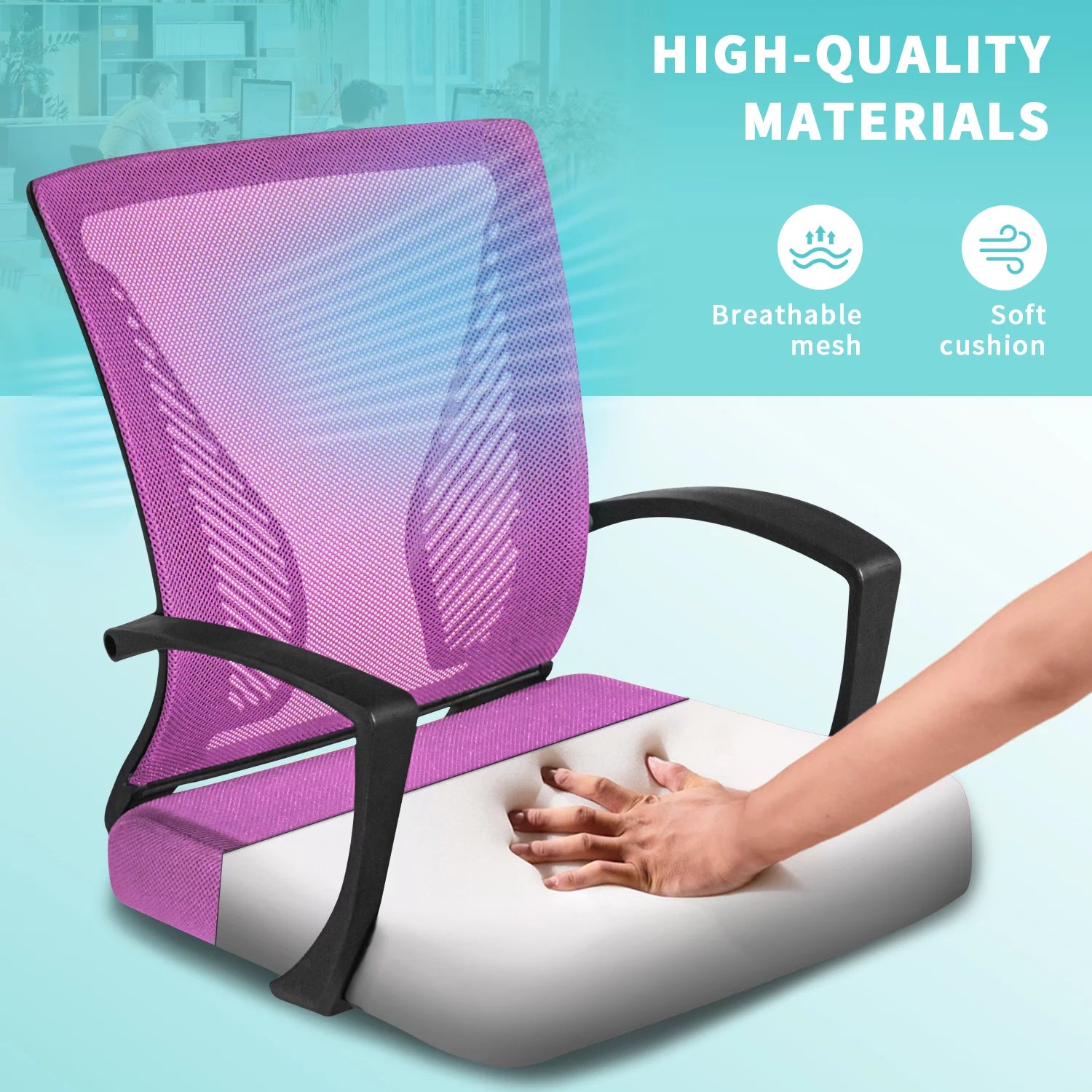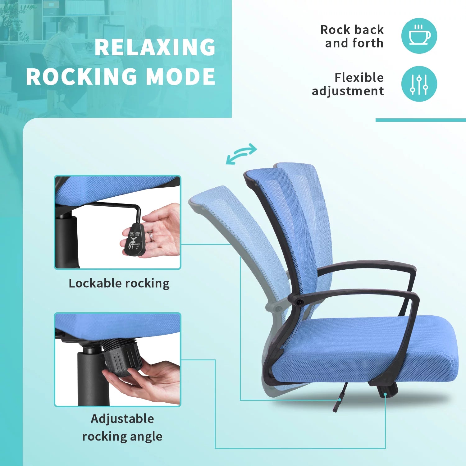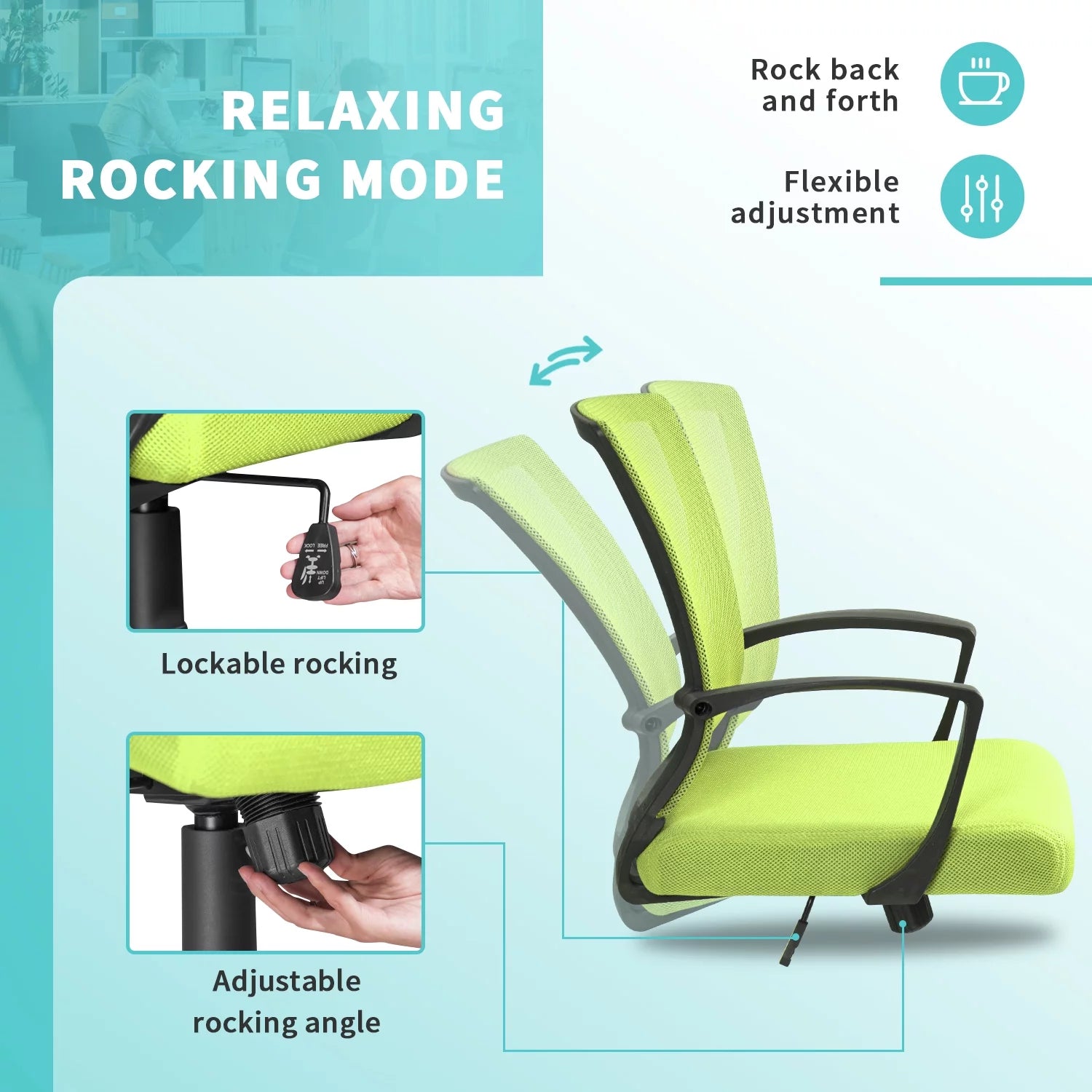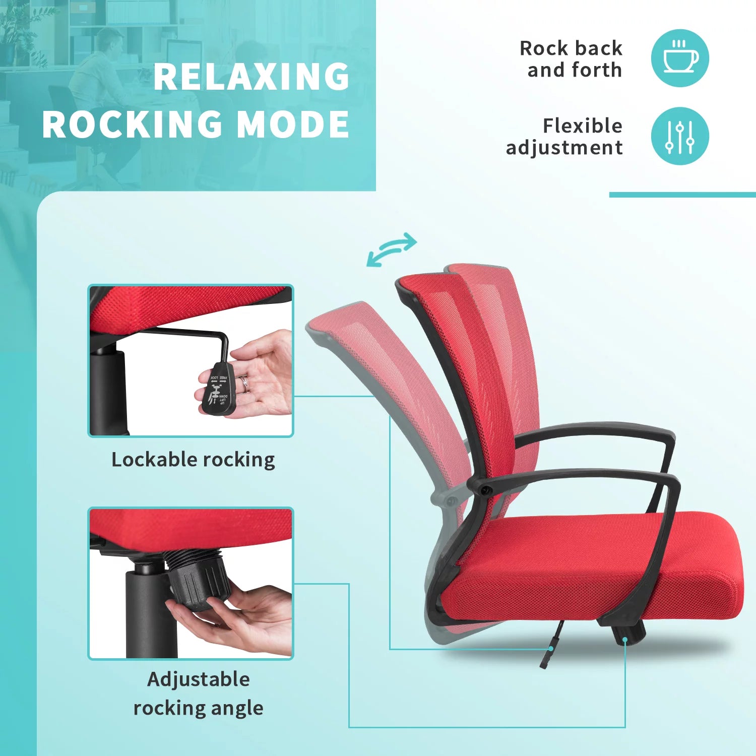 Furmax mid-back adjustable office chair is a good choice for your office. Ergonomic design with lumbar support can provide you with super comfort. Updated thick padded seat. The wing-type back supports. A soft seat and breathable mesh back can avoid backache and sweat. 5-star heavy-duty base with 360-degree swivel wheels, running smoothly on floors, more reliable and sturdier, maximum capacity up to 265 lbs.