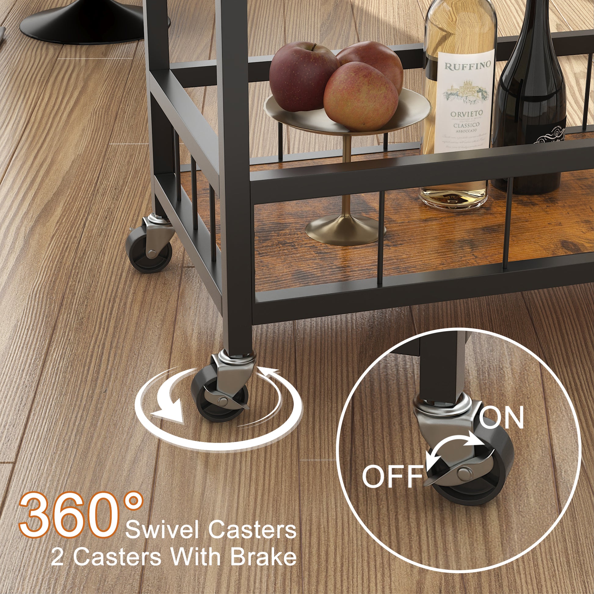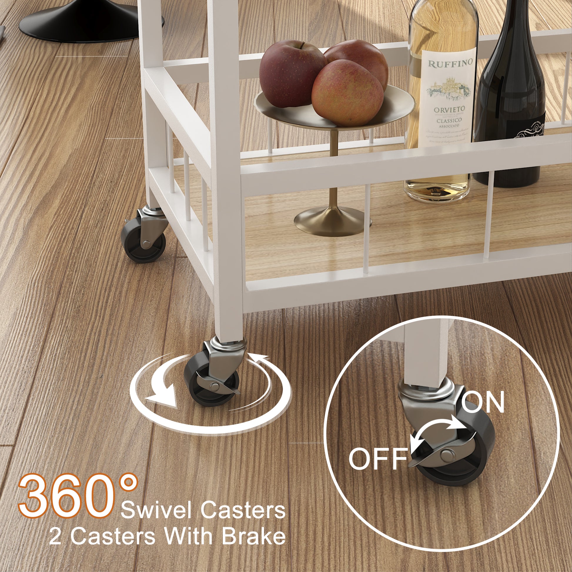 - 【Thoughtful Design Features】Our kitchen cart includes a wine rack capable of holding five bottles, a two-row glass holder, and a bottom fence shelf to prevent items from sliding off. The 360° rotating casters offer flexibility and convenience for all your serving needs.