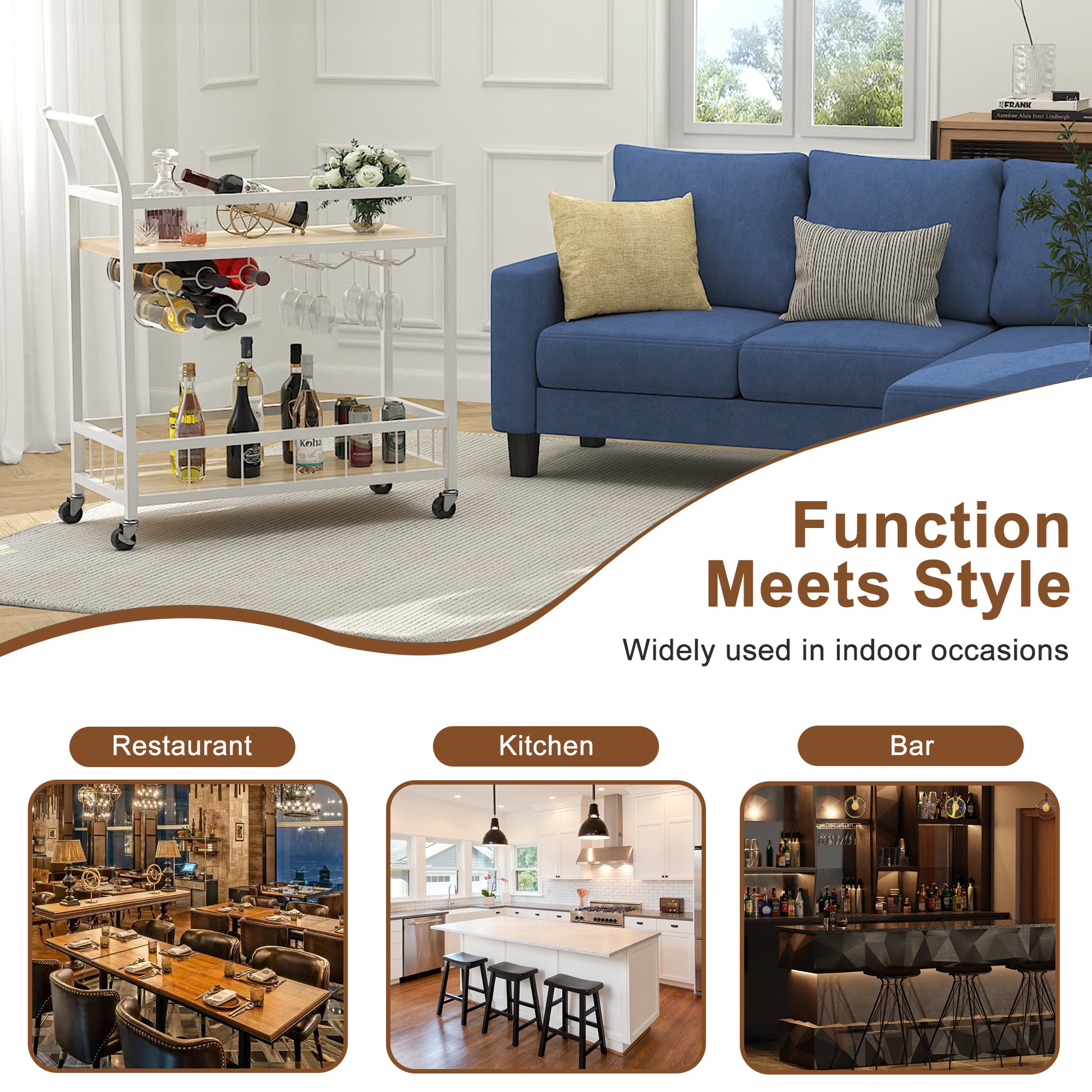 - 【Versatile Functionality】This cart adapts to your needs, serving as a mobile bar, versatile side table, or convenient food delivery cart. Effortlessly transport food and drinks from the kitchen to the dining area with ease.