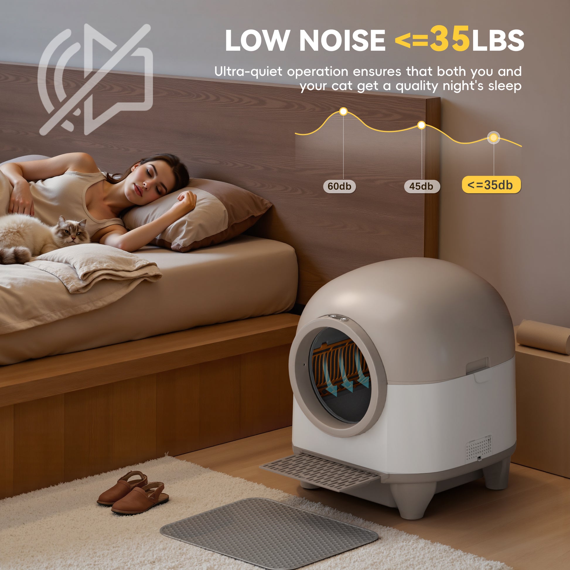 - CAT-FRIENDLY DESIGN: Our self-cleaning litter box prioritizes your cat's safety and comfort. With multiple sensors and radar, it can detect that your cat is inside and will pause the operation to prevent any disturbance. Your furry friend can enjoy a clean litter box without any disturbance.