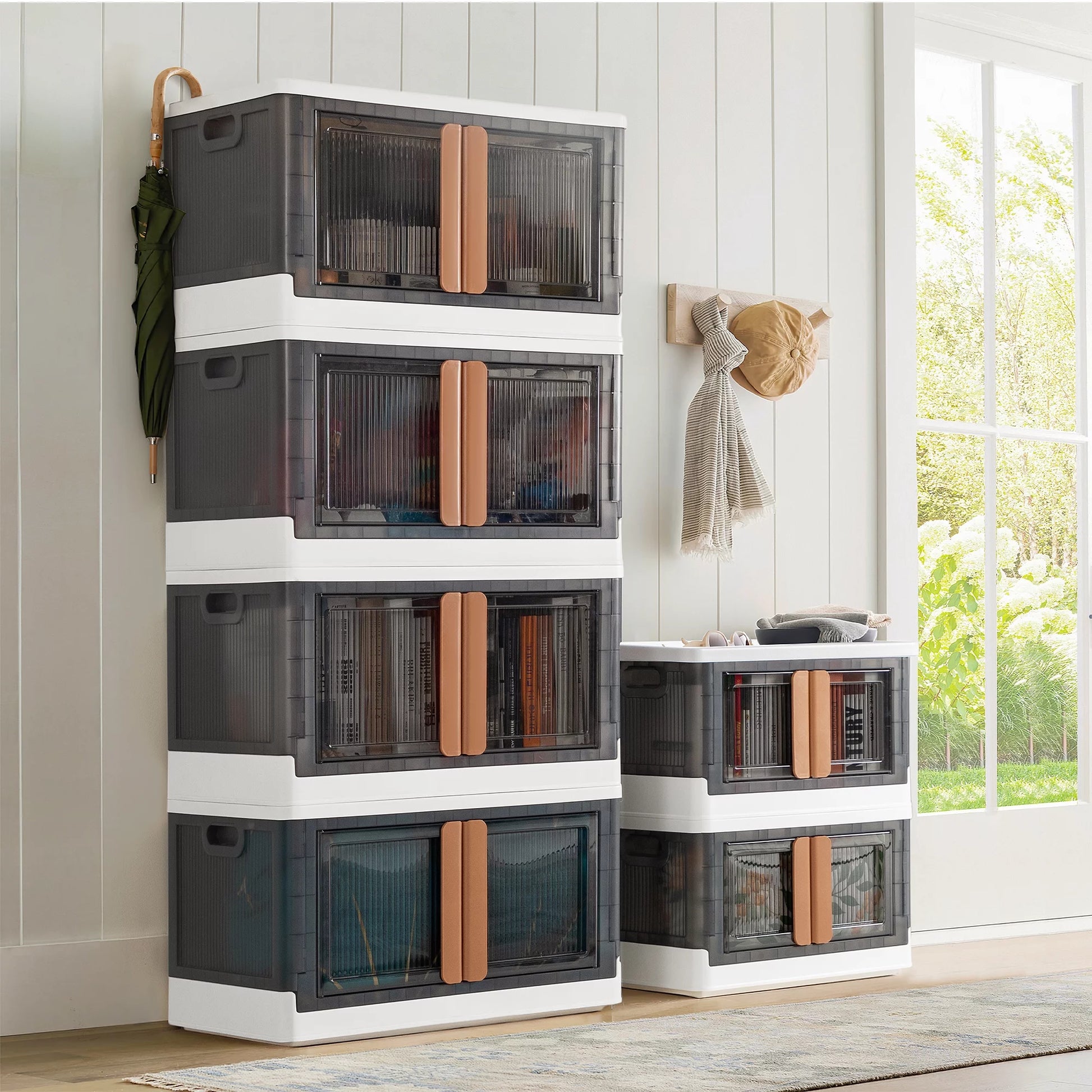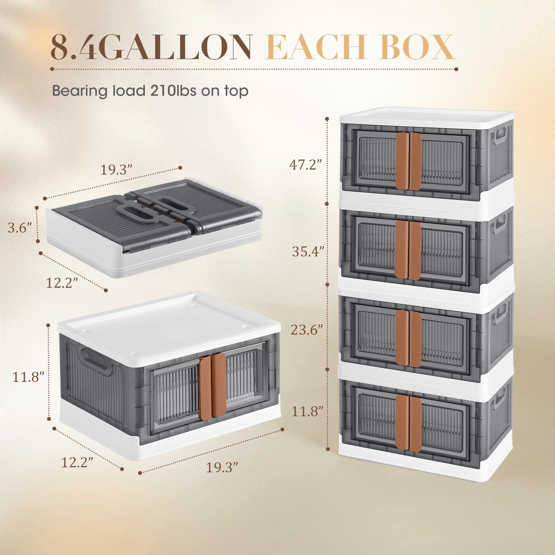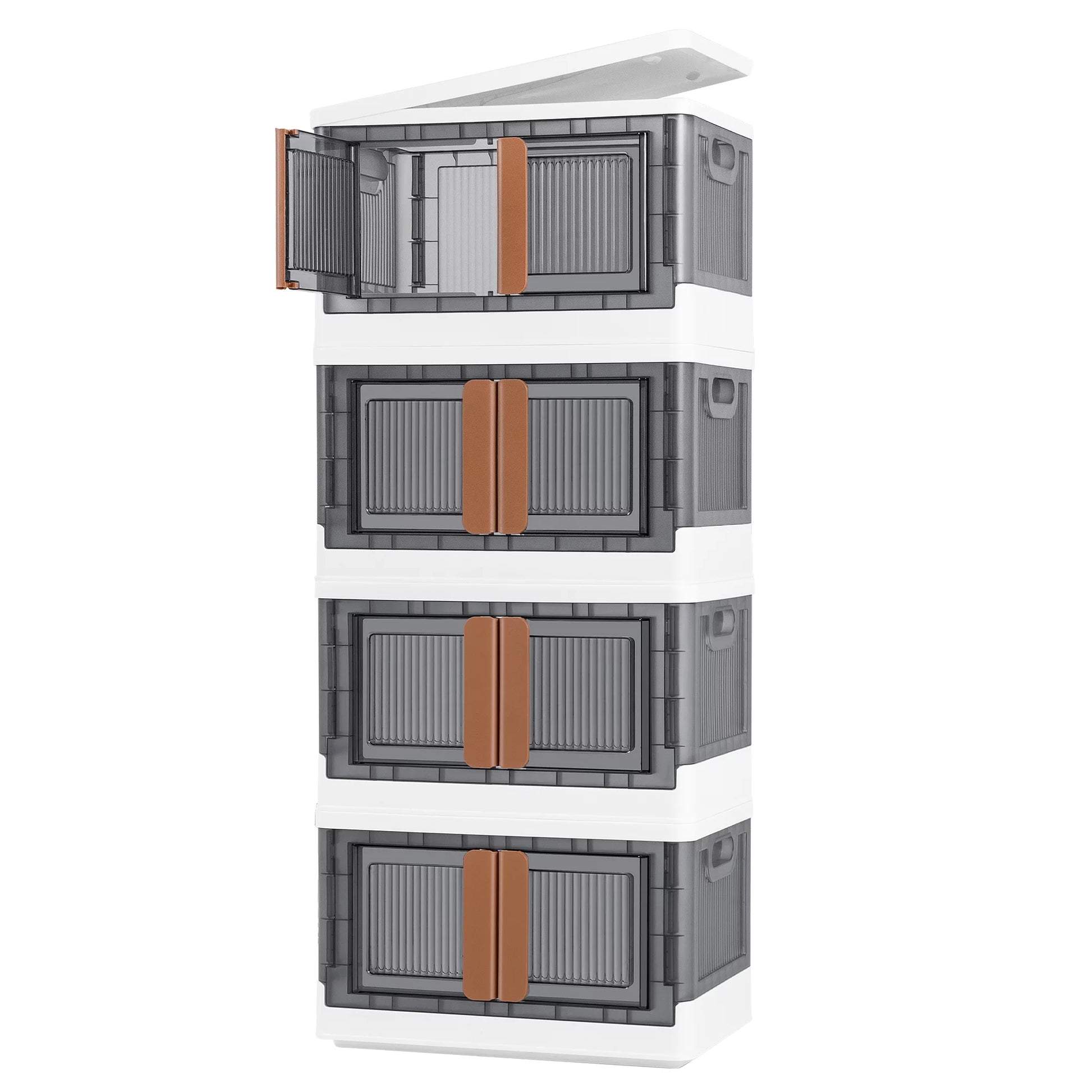 Furmax Storage Bins with Lids Collapsible Storage Cabinet for Closet Organizers, Plastic Container for Clothes, Books, Toys Stackable Storage Box with Wheels for Home, Dorm