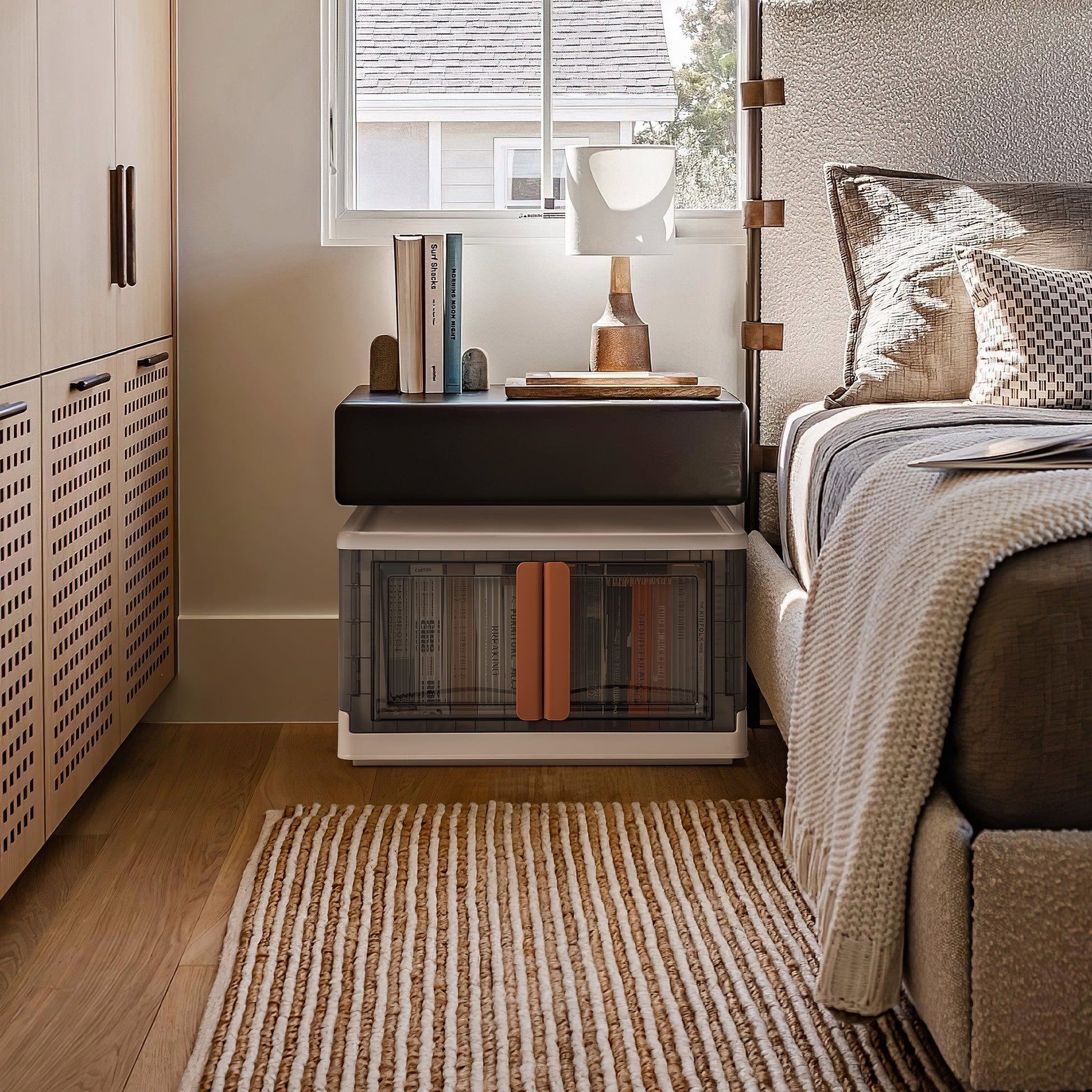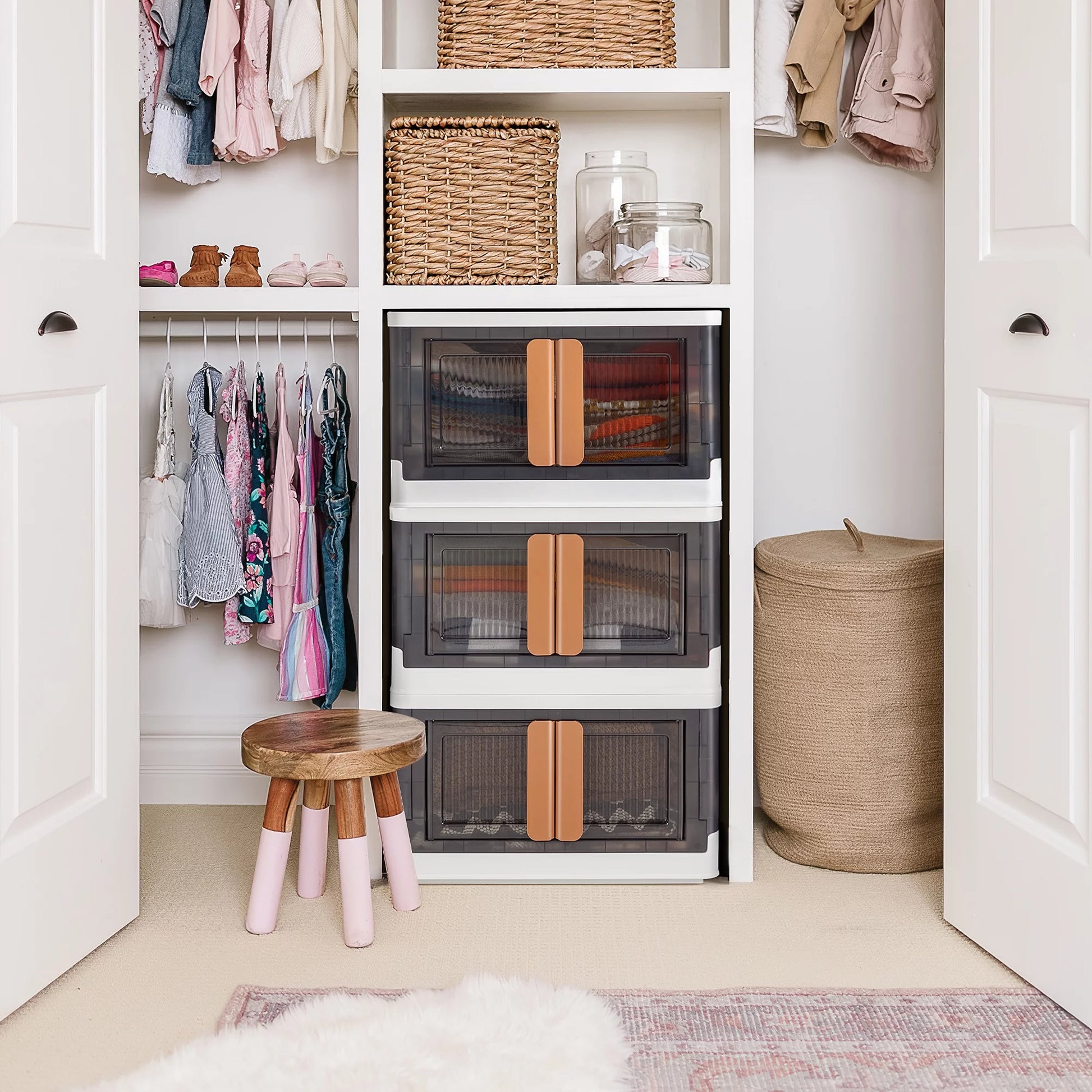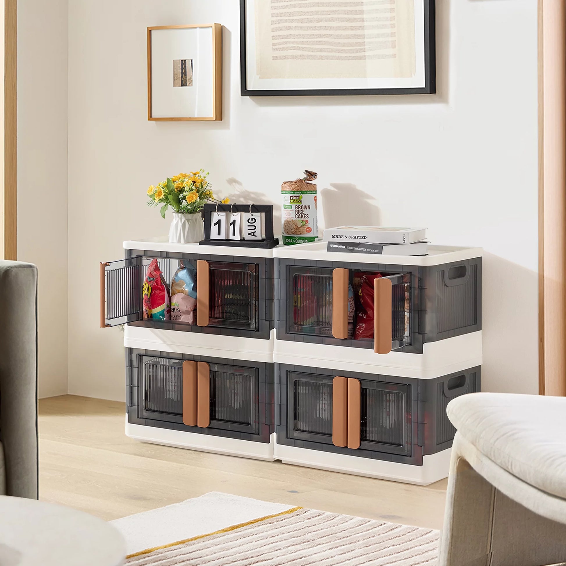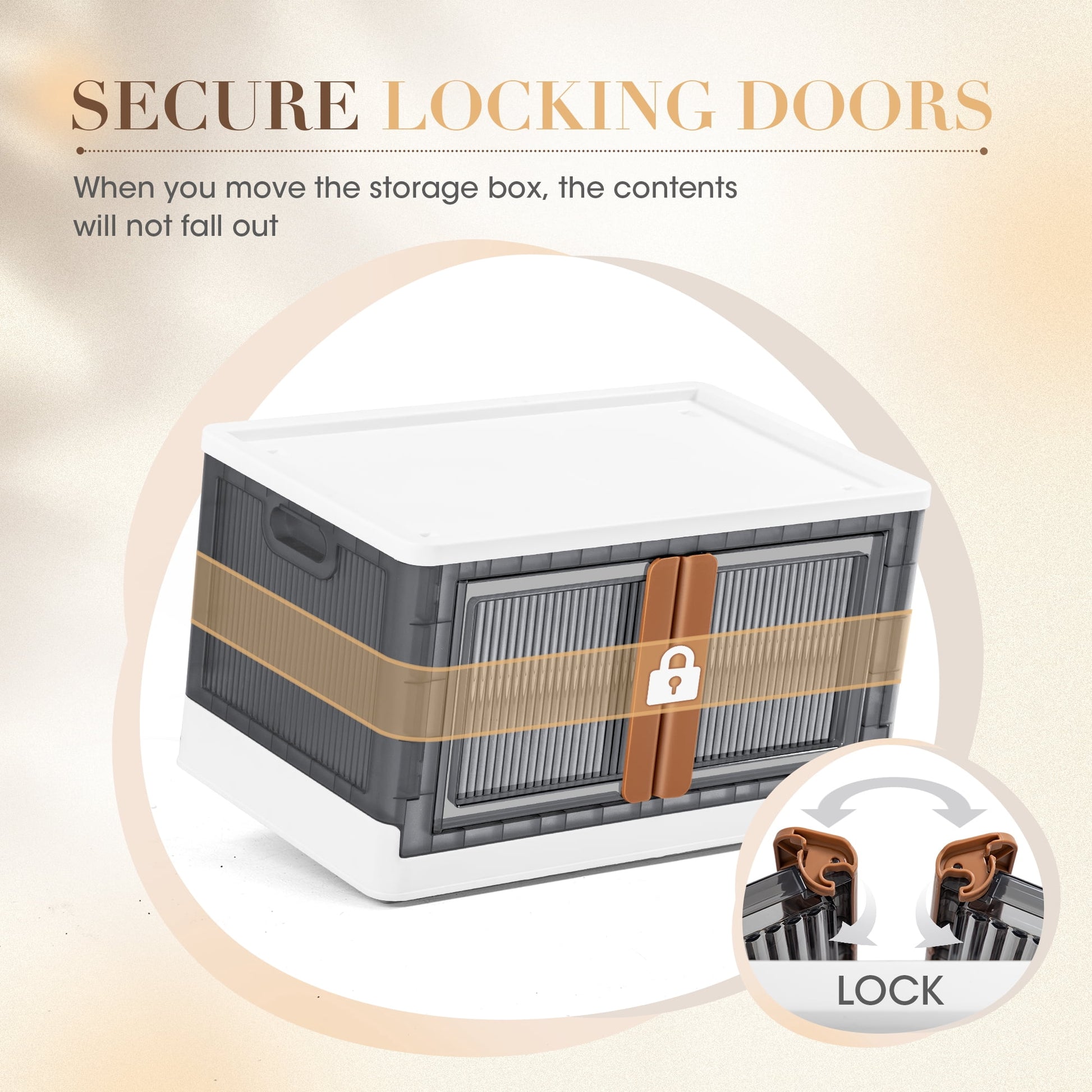 - Two-Way Opening Innovation: Our storage box offers not one, but two convenient pathways to reach your belongings. You have the choice to lift the lid from the top, granting quick and easy access, or you can opt for the front door option. The front door features an incorporated latch, ensuring a secure closure to prevent accidental openings and the risk of items tumbling out.