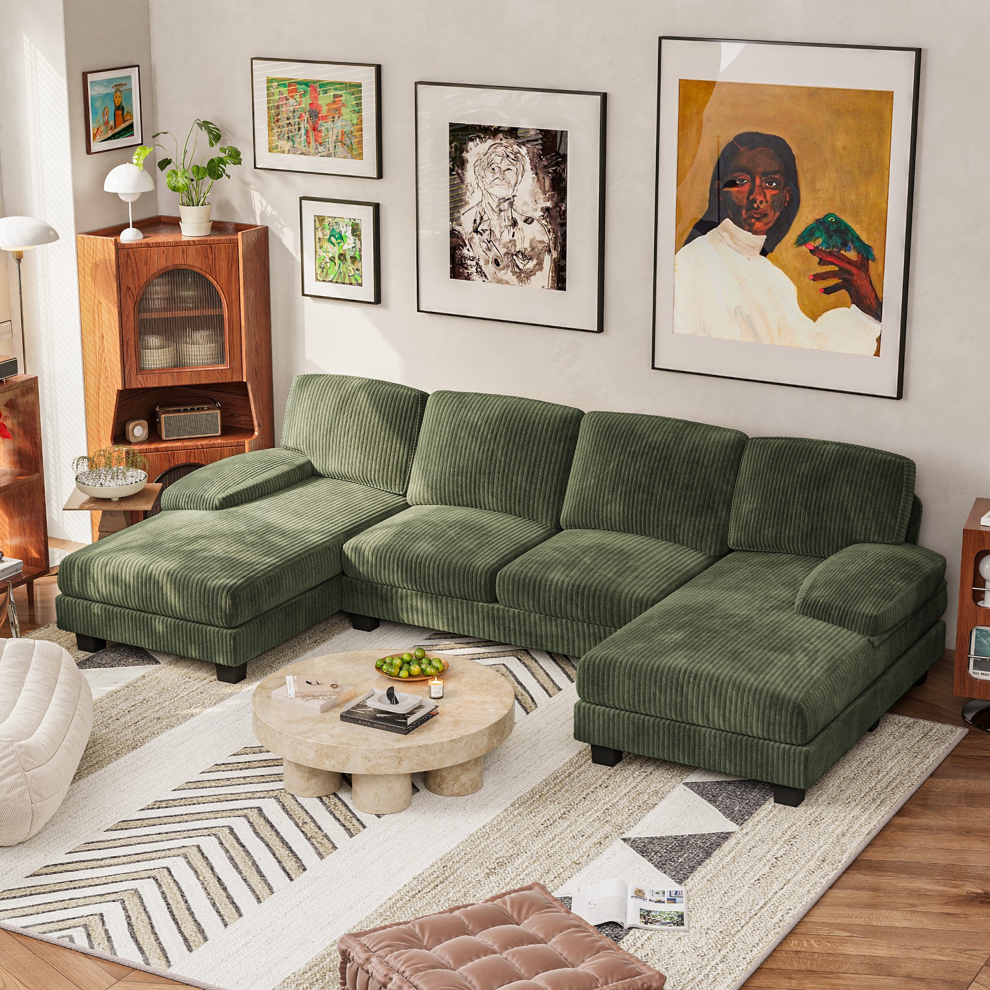 Transform your living space into a cozy haven with the Furmax U-Shaped Sectional Sofa, expertly crafted for both style and practicality. Choose between two premium upholstery options to suit your lifestyle: cloud-soft Chenille fabric for breathable, year-round comfort, or durable Corduroy with anti-scratch technology, ideal for homes with pets or active kids. Built on a robust solid wood frame and reinforced legs, this sectional delivers unwavering stability while accommodating up to 6 adults comfortably.Sink into high-resilience foam cushions that mold to your body, offering day-long support for movie marathons, game nights, or casual lounging. The zippered, machine-washable covers (seat, back, and armrests) effortlessly tackle spills, stains, or pet hair, ensuring your sofa stays fresh with minimal effort. Designed for urban living, this apartment-friendly sectional ships in 2 compact, easy-to-handle boxes (no elevator struggles!), and assembles in just 30 minutes.Perfectly sized for studio apartments or open-concept lofts, the U-shaped configuration fosters conversation and maximizes seating without overwhelming your space. Neutral tones (Beige, Grey, Green) and clean lines blend seamlessly with modern décor, while the sturdy yet sleek design elevates your home’s aesthetic.