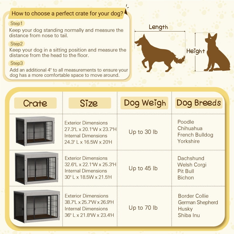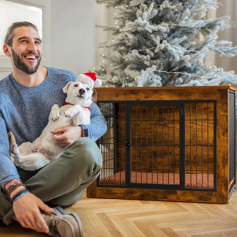 Furmax Wooden Indoor Dog Crate Furniture Double Doors Dog Crate with Thick Cushion